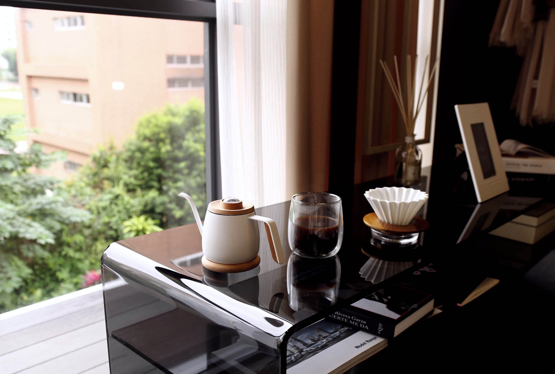 每天上班的時候,總是習慣為自己沖一杯咖啡,沈浸在濃郁的咖啡香中,是放鬆也是為自己充電。但是你也有這樣的困擾嗎?覺得一般的手沖壺太大又重,擺在桌上有點佔空間,杯子也沒有剛好一杯的容量,少了溫度計難以掌控水溫,外型不夠好看...等等![]()