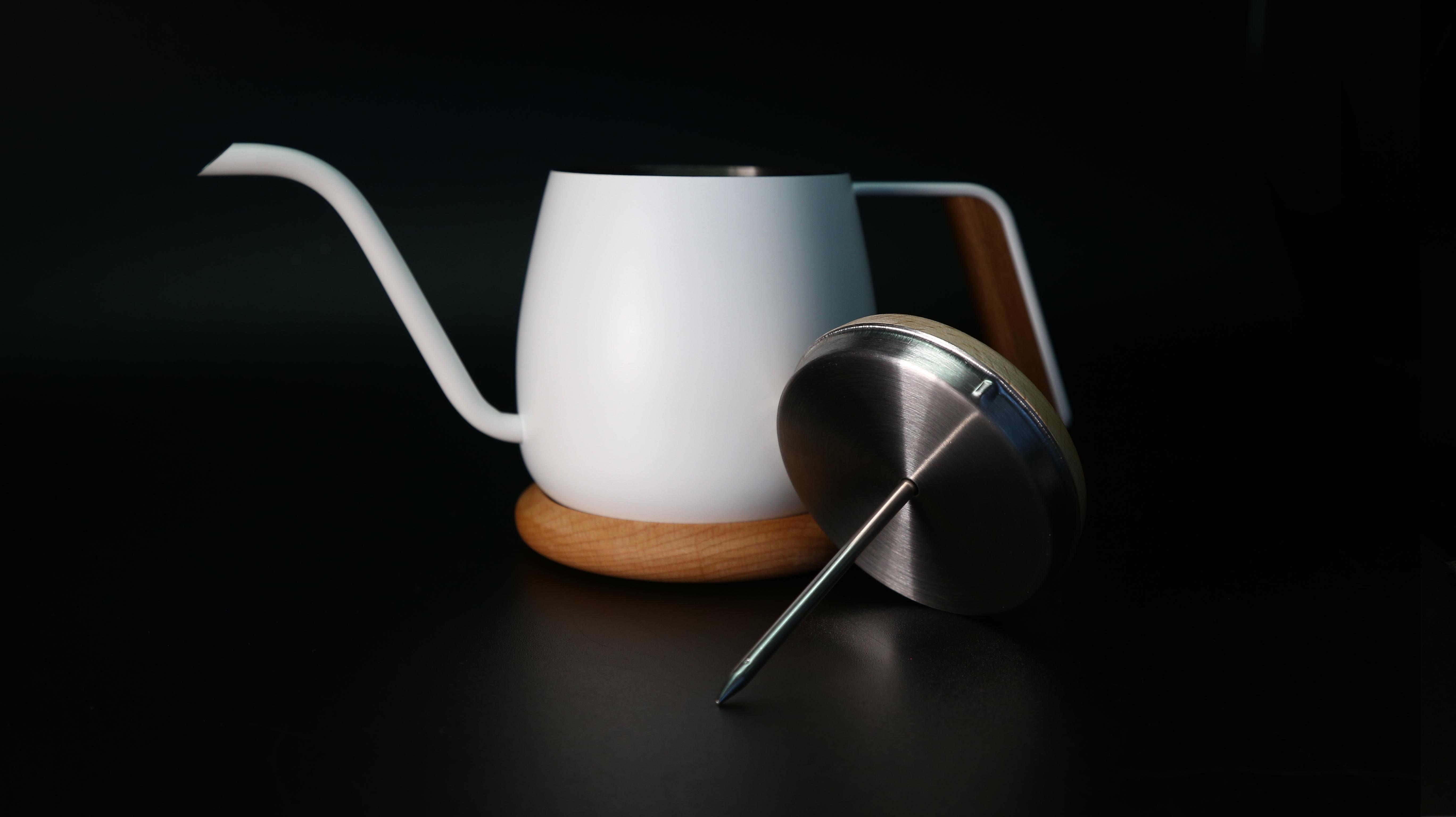 從外觀看到內在,從材質看到巧思,別忘了還有影響手感最最最關鍵的壺嘴!團隊表示 TAMAGO 的製作請到國際大廠品牌的製造廠代工,壺嘴的設計與加工技術都是業界裡有口皆碑的。最終設計師選擇 4mm 的細口直徑,經過層層把關與反覆打樣測試,調整出最理想的角度,並在台灣咖啡展上邀請上百位參觀者親身體驗,不管是垂直、細水、水滴等各種手沖技法,都能維持絕佳的手感,輕鬆容易好上手!