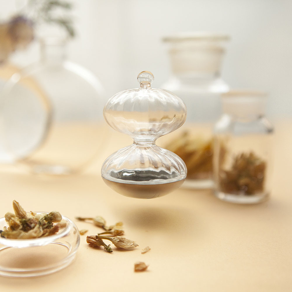 與地心保持垂直的秘密,經過精密的研發設計、不斷調整產品結構,並克服製造上的種種困難,最終方能呈現完美漂浮的浮雲醇茶器。密閉氣室與平衡的造型,讓醇茶器在倒茶時,始終保持與水面垂直的站立漂浮姿態,不必擔心掉出壺外。精心挑選搭配的700cc玻璃壺,側身弧線與醇茶器完美配合,倒茶時更順手更安心使用。