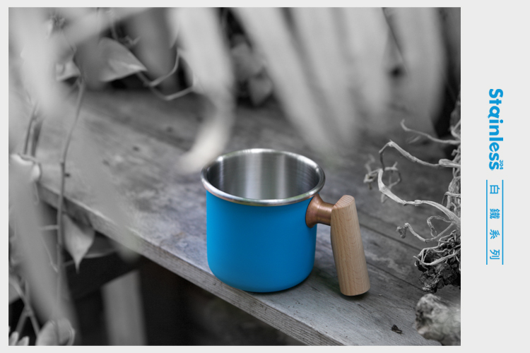 Truvii_木柄白鐵杯 400ml 河口藍