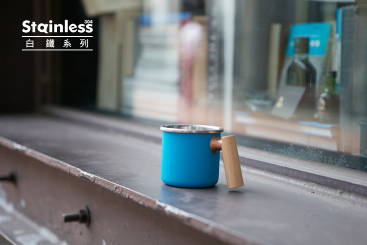 木柄白鐵杯 400ml 河口藍