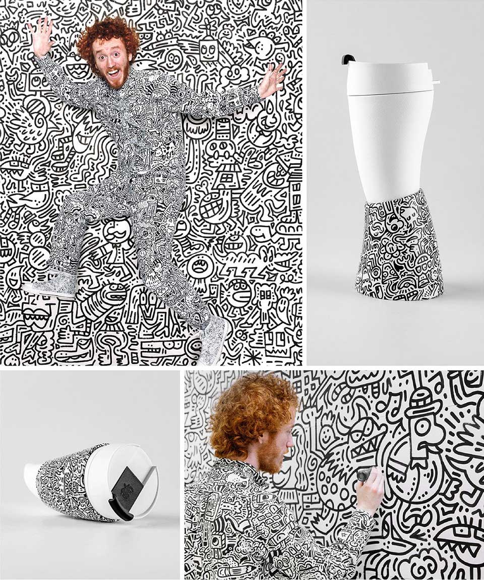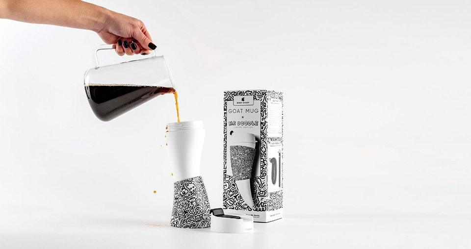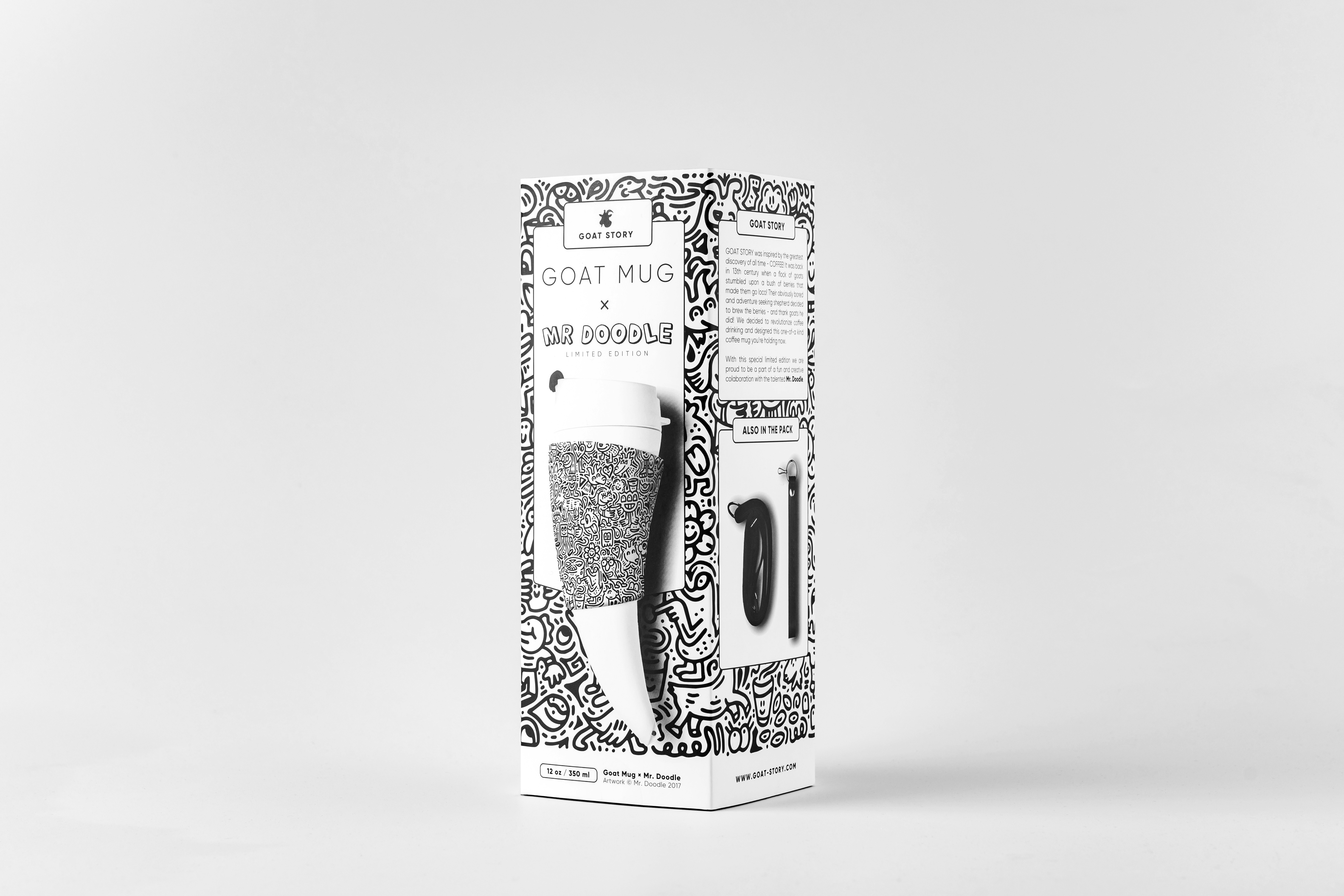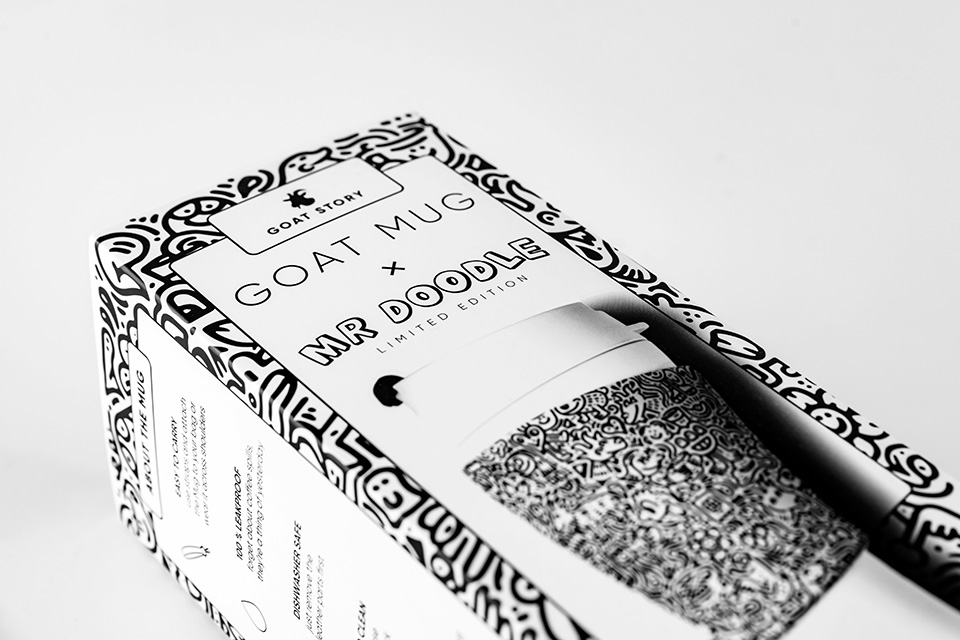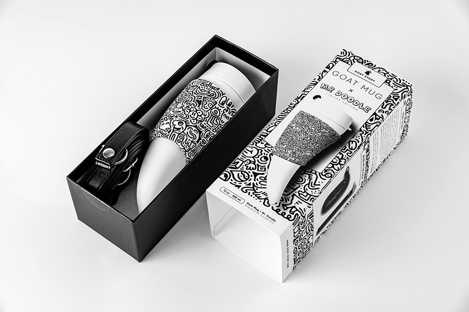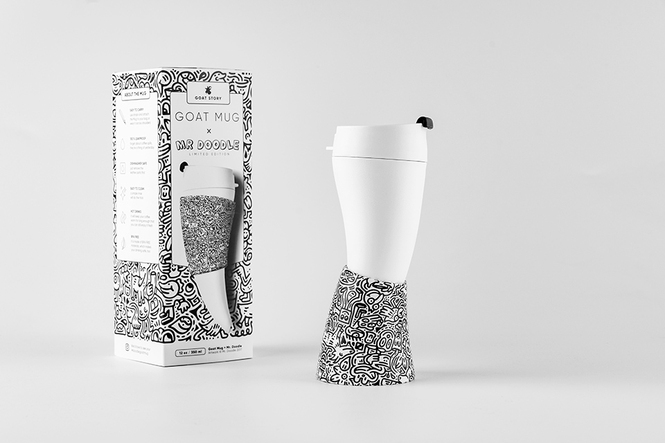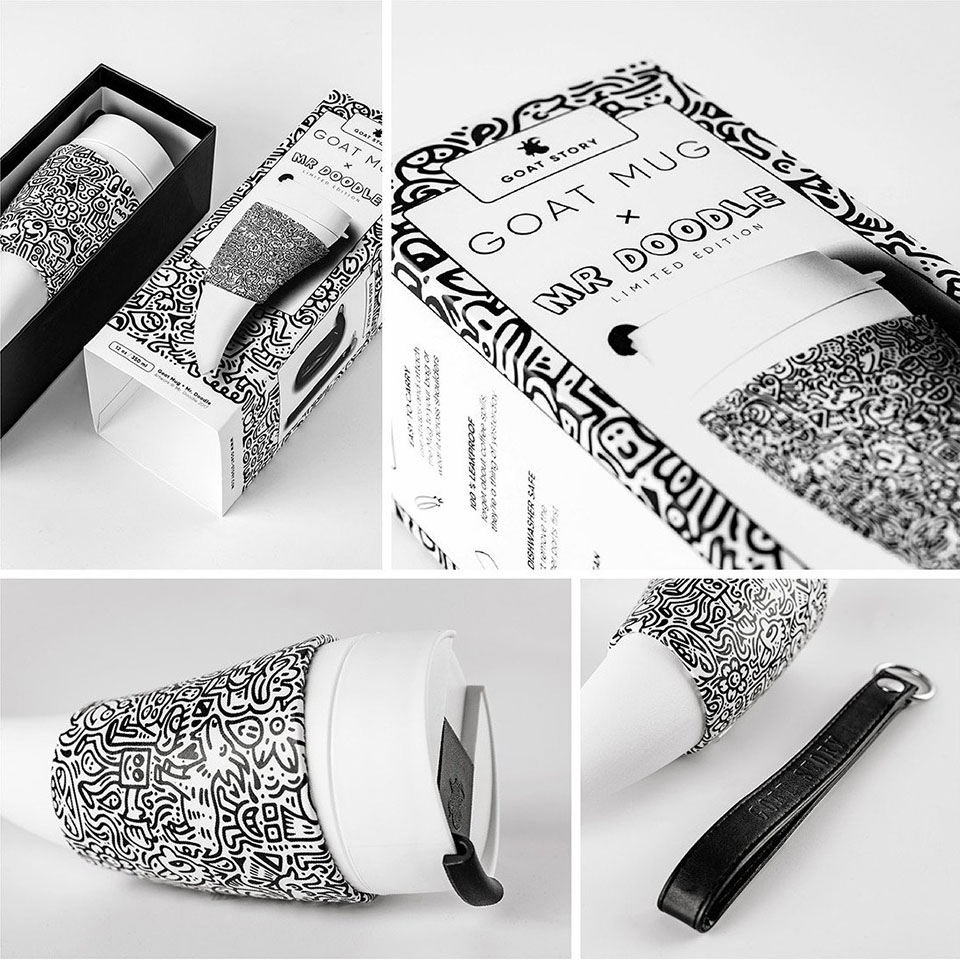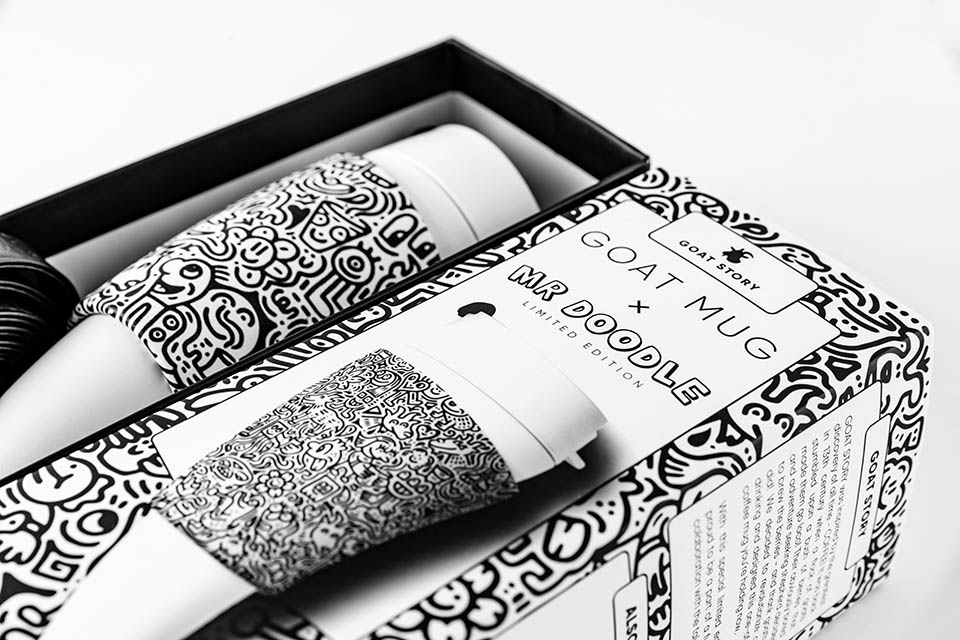 Mr. Doodle 塗鴉先生已經與許多知名品牌 MTV,Adidas 和 Case Art 合作過, 而到了 2018 年,他選擇了將自己獨特的忙碌風格與一樣富有創意的 GOAT STORY 山羊角咖啡杯結合在一起了!