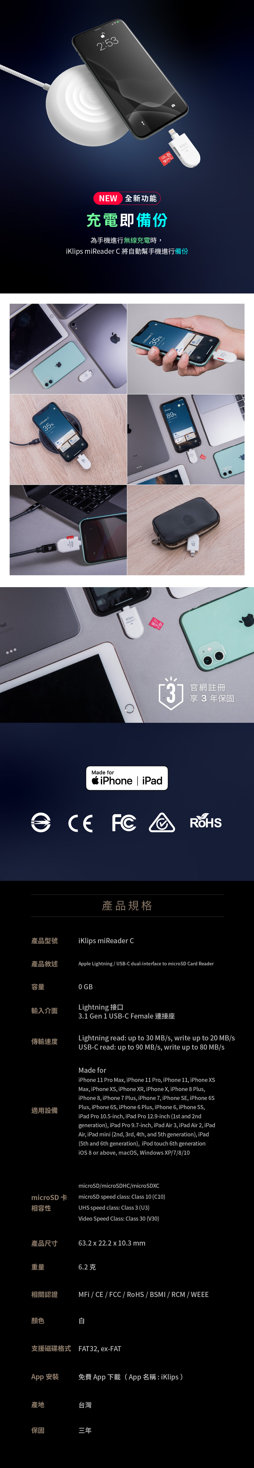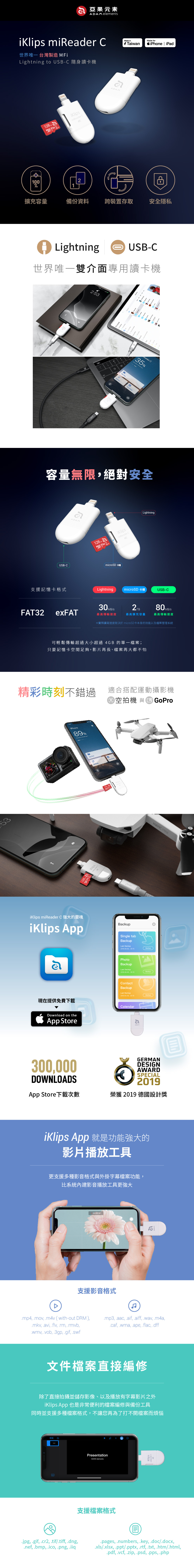 iKlips miReader C 4K 蘋果 Lightning & USB-C 雙介面讀卡機-無容量版
