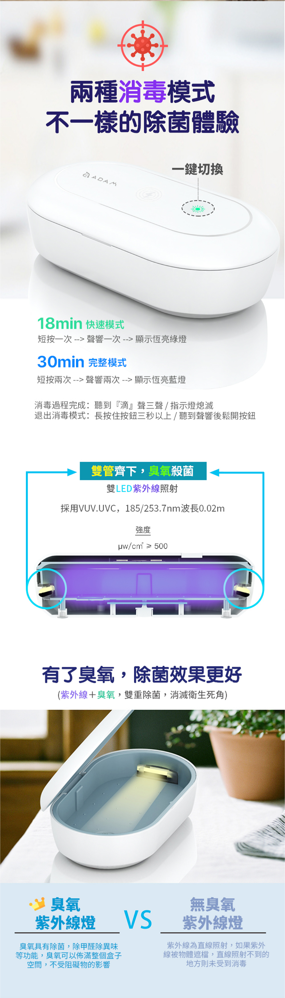 ADAM OMNIA UVC + 無線充電臭氧紫外線燈殺菌盒 單入 (含QC快充器)