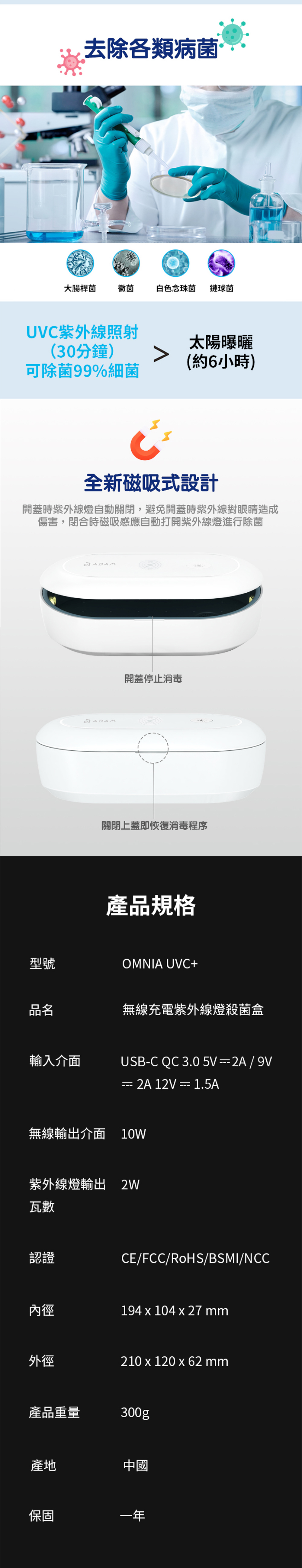 OMNIA UVC + 無線充電臭氧紫外線燈殺菌盒 單入 (含QC快充器)