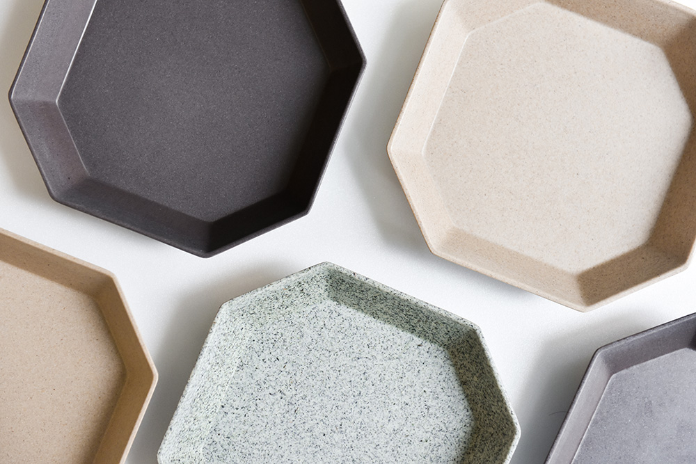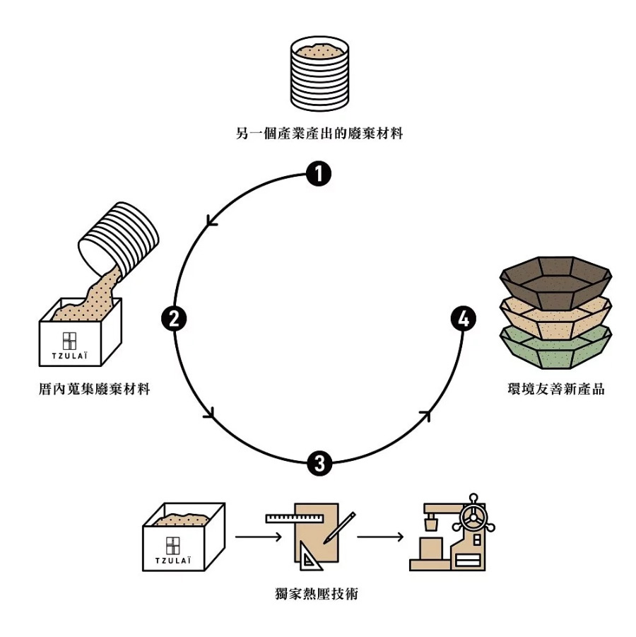 採用 100% 天然材質製成:以自然分解的竹纖維為基底,加上原本被視為廢料的茶葉梗、稻殼、咖啡渣等素材,透過獨家材質處理與熱壓技術,賦予竹材邊角料與天然素材新生命,把竹纖維八角盤升級再製再進化,讓資源循環不息。