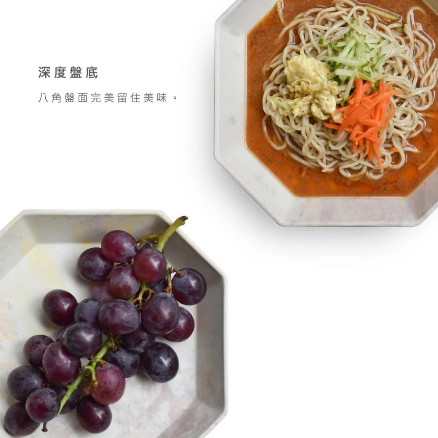 厝內竹纖維八角盤靈感來自生活中的磚型磁磚,一層一疊,排列出文化與記憶。較深的盤面,保護料理與湯汁;可堆疊的設計,收納方便;輕盈的盤身,方便野餐攜帶;沉穩的配色,室內料理也合適!