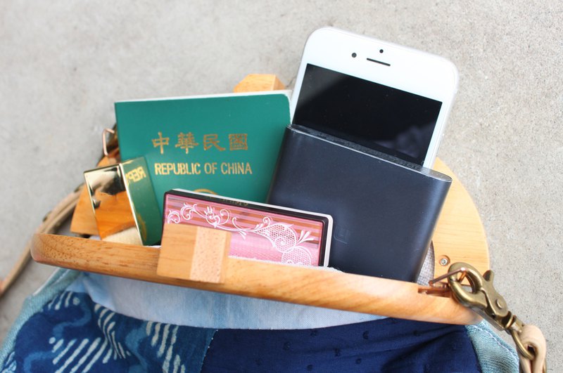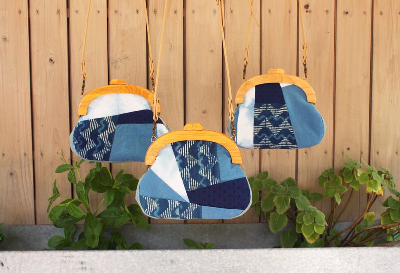 使用天然藍染、水洗牛仔與印度木刻印花布製作,可攜帶輕裝出遊的隨身小物。搭配原木口金框磁扣設計,日式優雅中帶點俏皮可愛,世界獨一無二的包包!