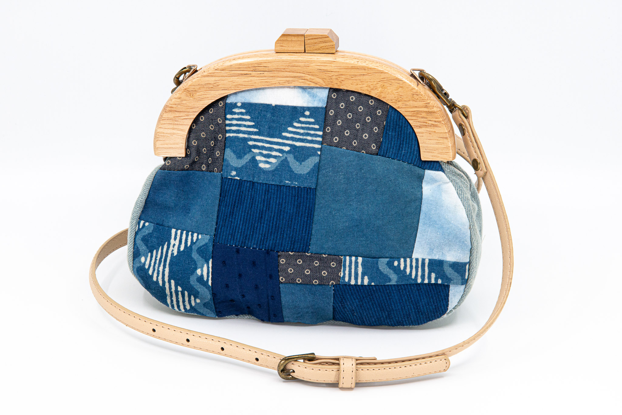 藍染拼接木口金包