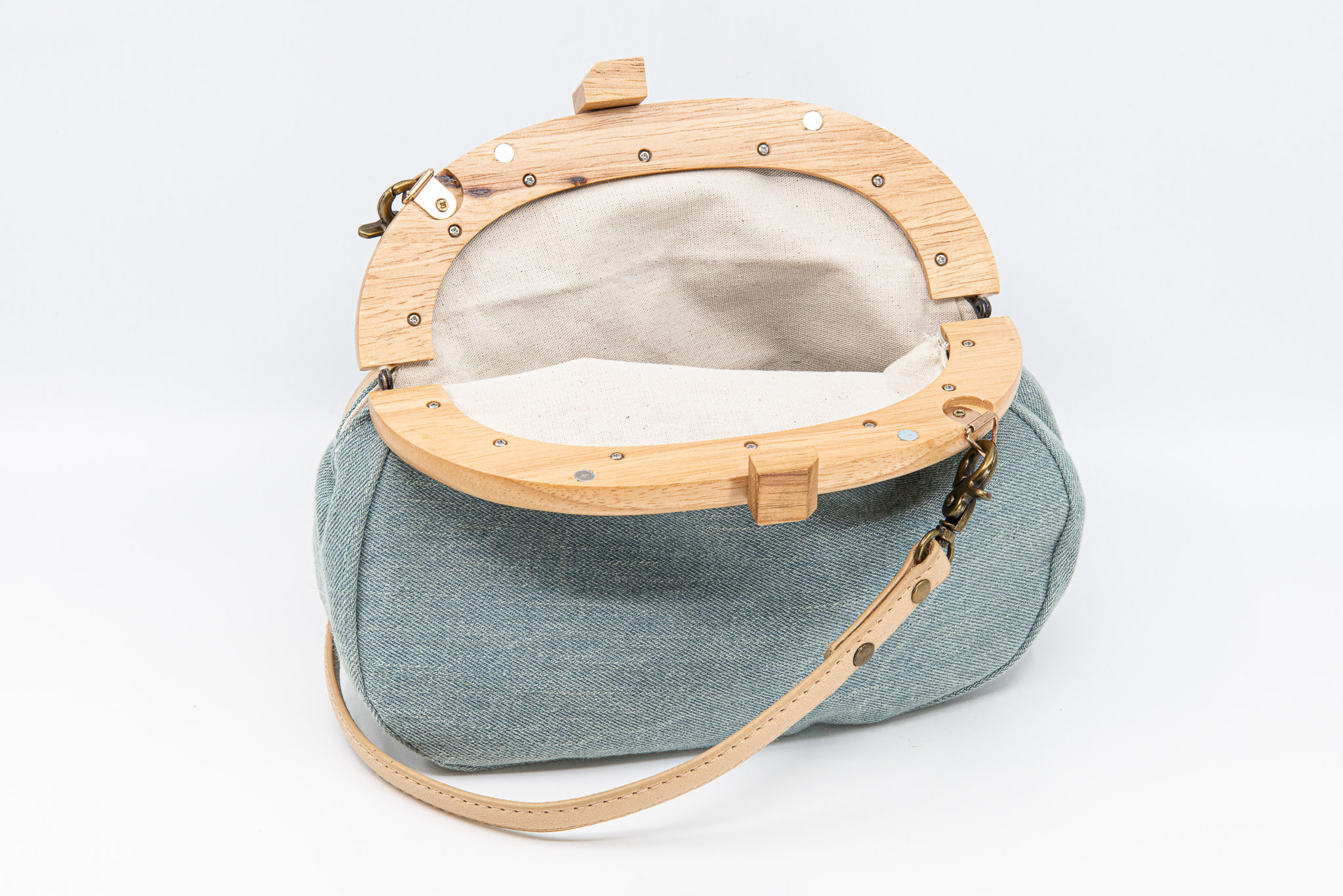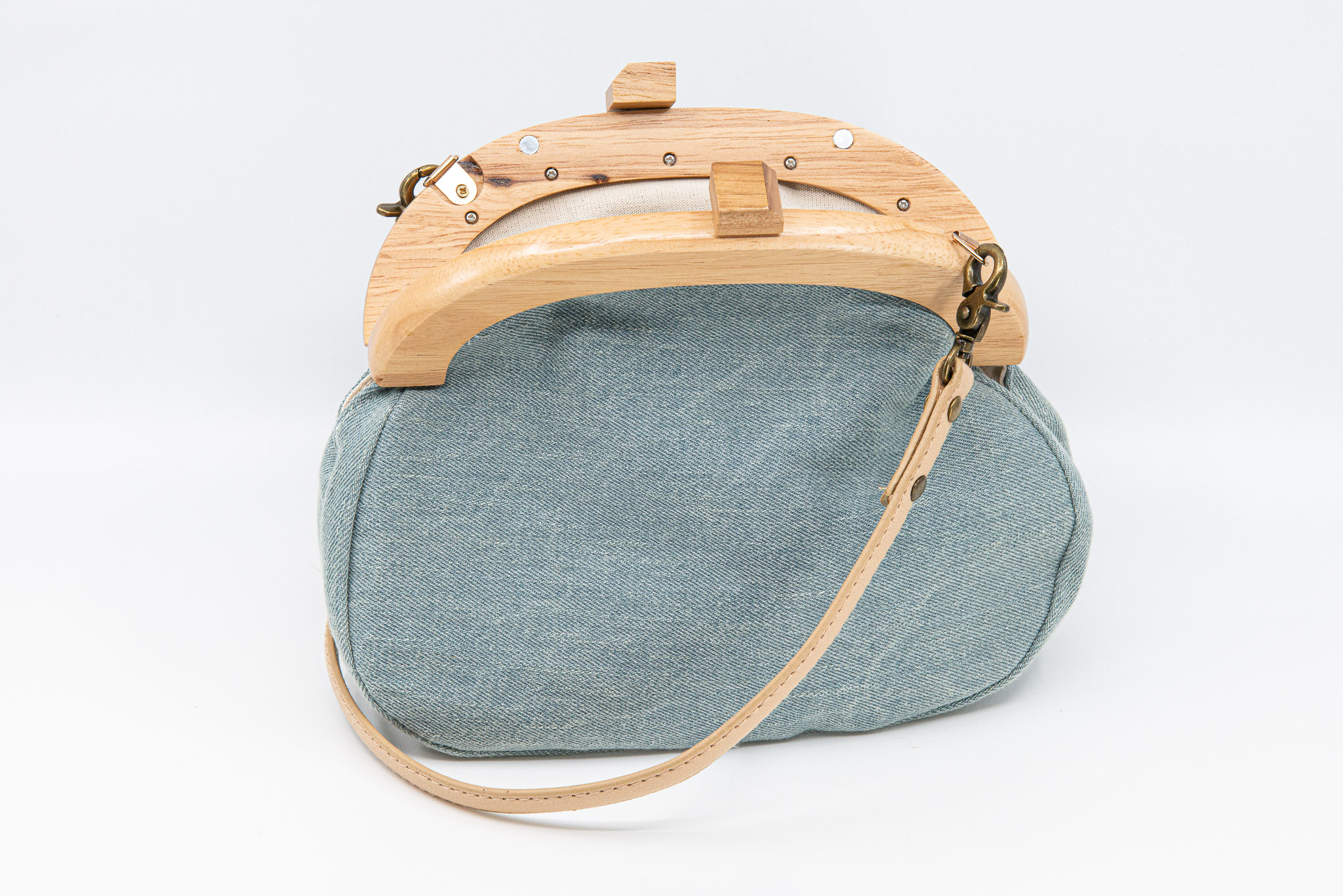 月升_藍染拼接木口金包