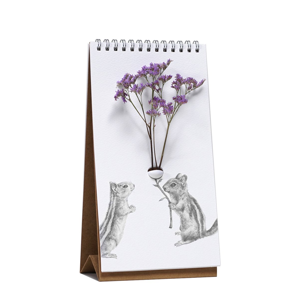 翻頁花器是設計團隊突破框架,結合翻頁書和花瓶的作品,外觀看起來就像是一本桌曆,一頁一頁有著優雅的花瓶或人物插畫,但它卻有著一個能夠固定於翻頁書的花瓶,使用者可以將花朵插進這瓶容器中,再以心情翻動印有圖騰的書頁,搭配出不一樣的花花世界。