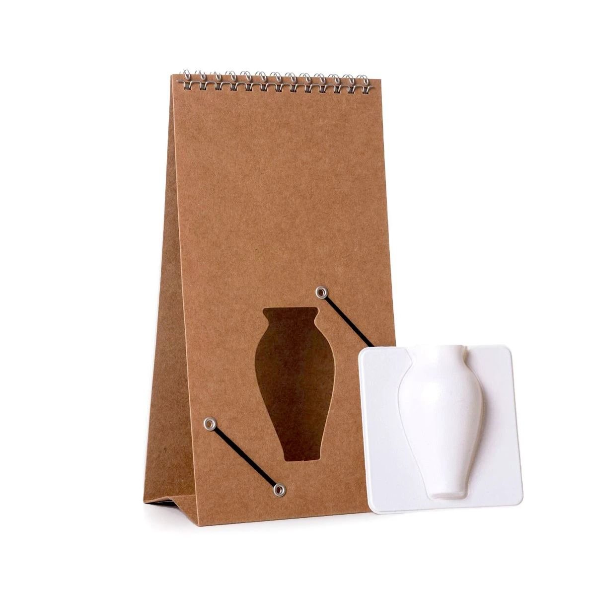 翻頁花器是設計團隊突破框架,結合翻頁書和花瓶的作品,外觀看起來就像是一本桌曆,一頁一頁有著優雅的花瓶或人物插畫,但它卻有著一個能夠固定於翻頁書的花瓶,使用者可以將花朵插進這瓶容器中,再以心情翻動印有圖騰的書頁,搭配出不一樣的花花世界。