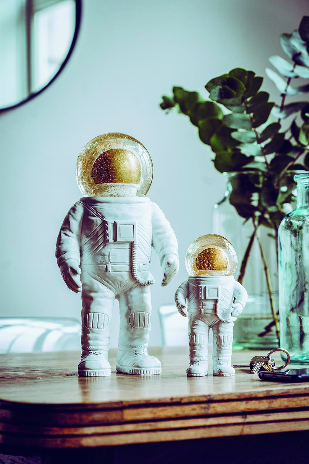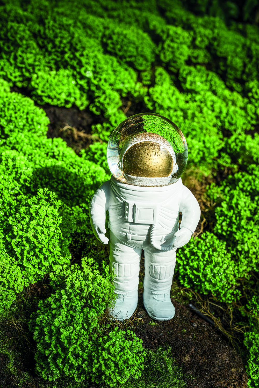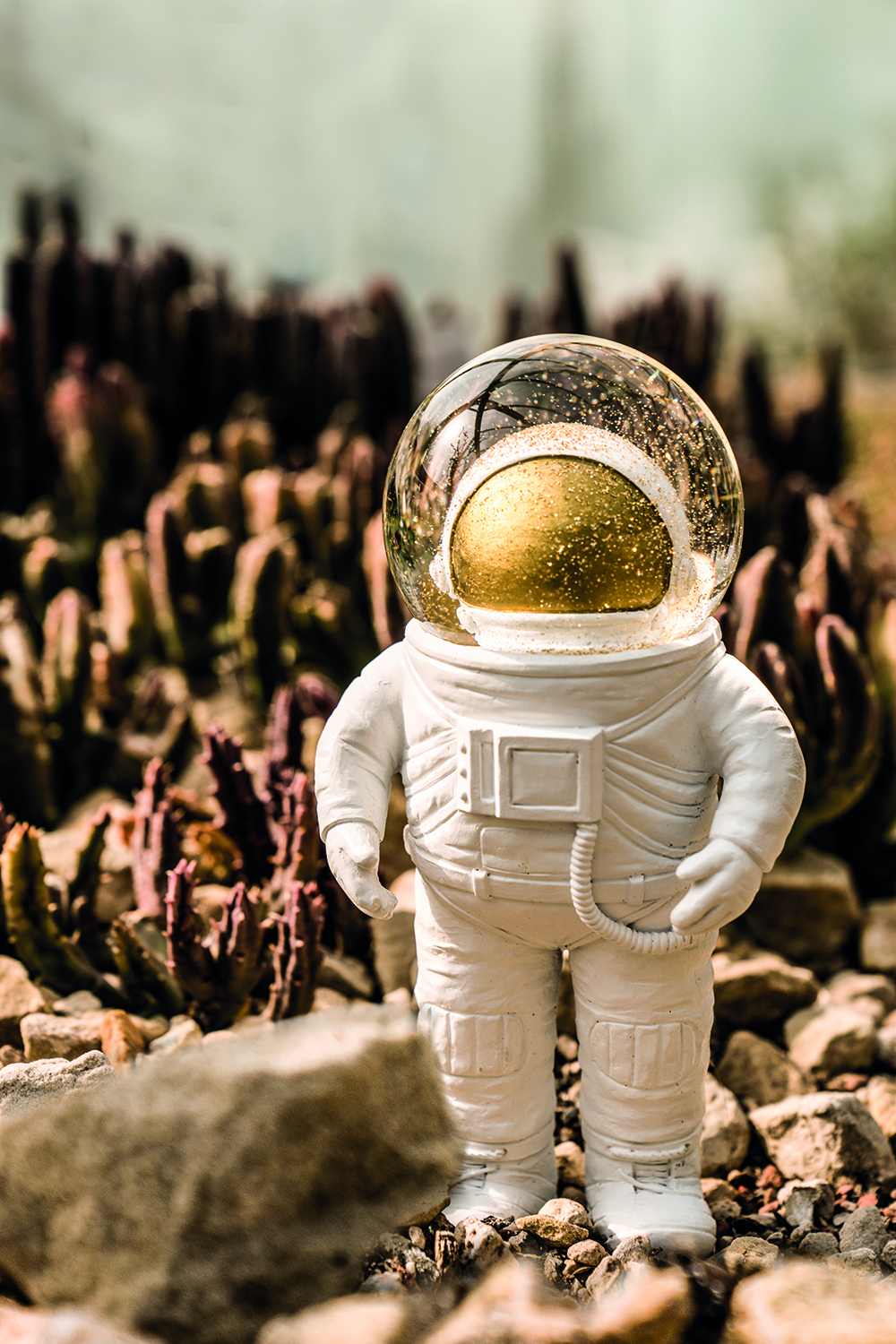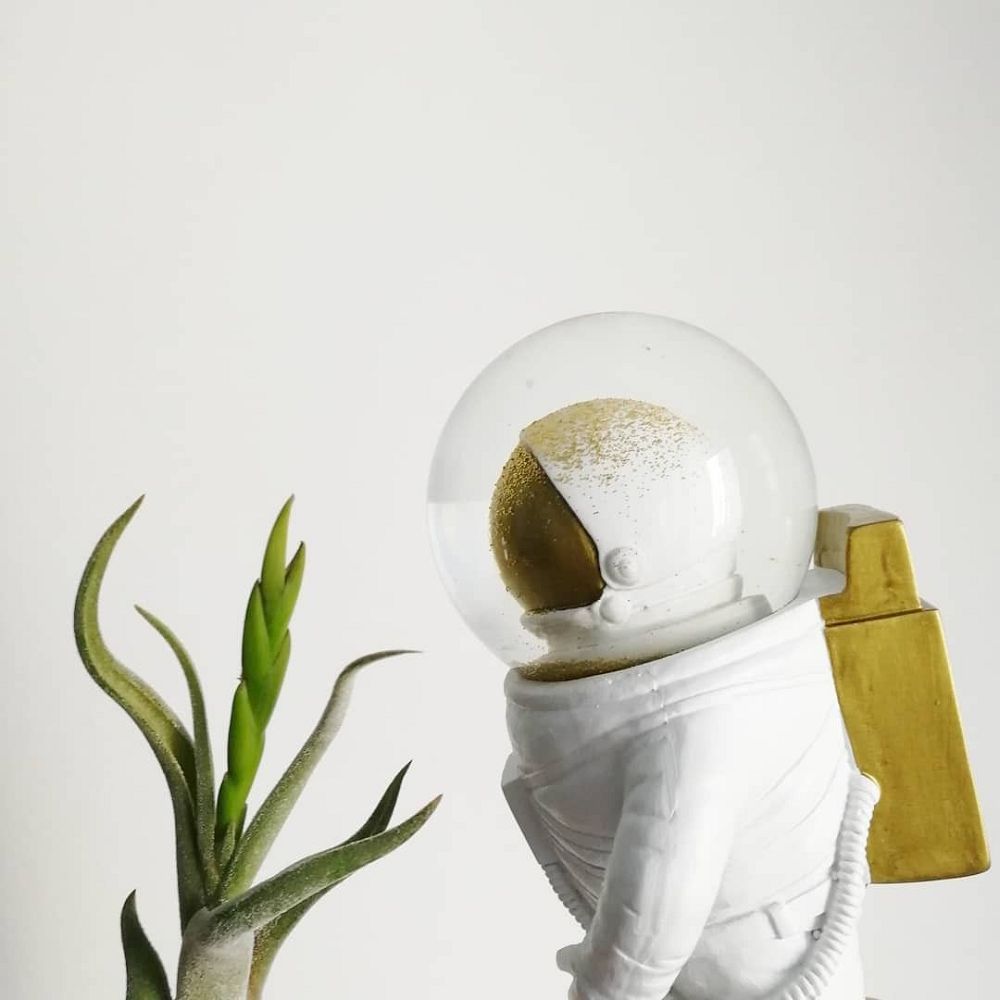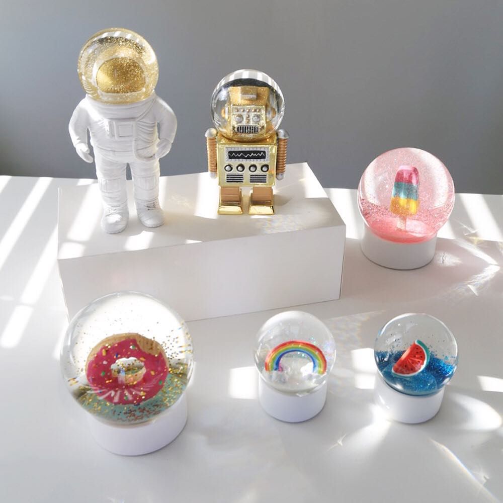 ◆ 精緻的金色閃光片在太空人充滿水的頭盔裡,只需搖晃,效果極佳