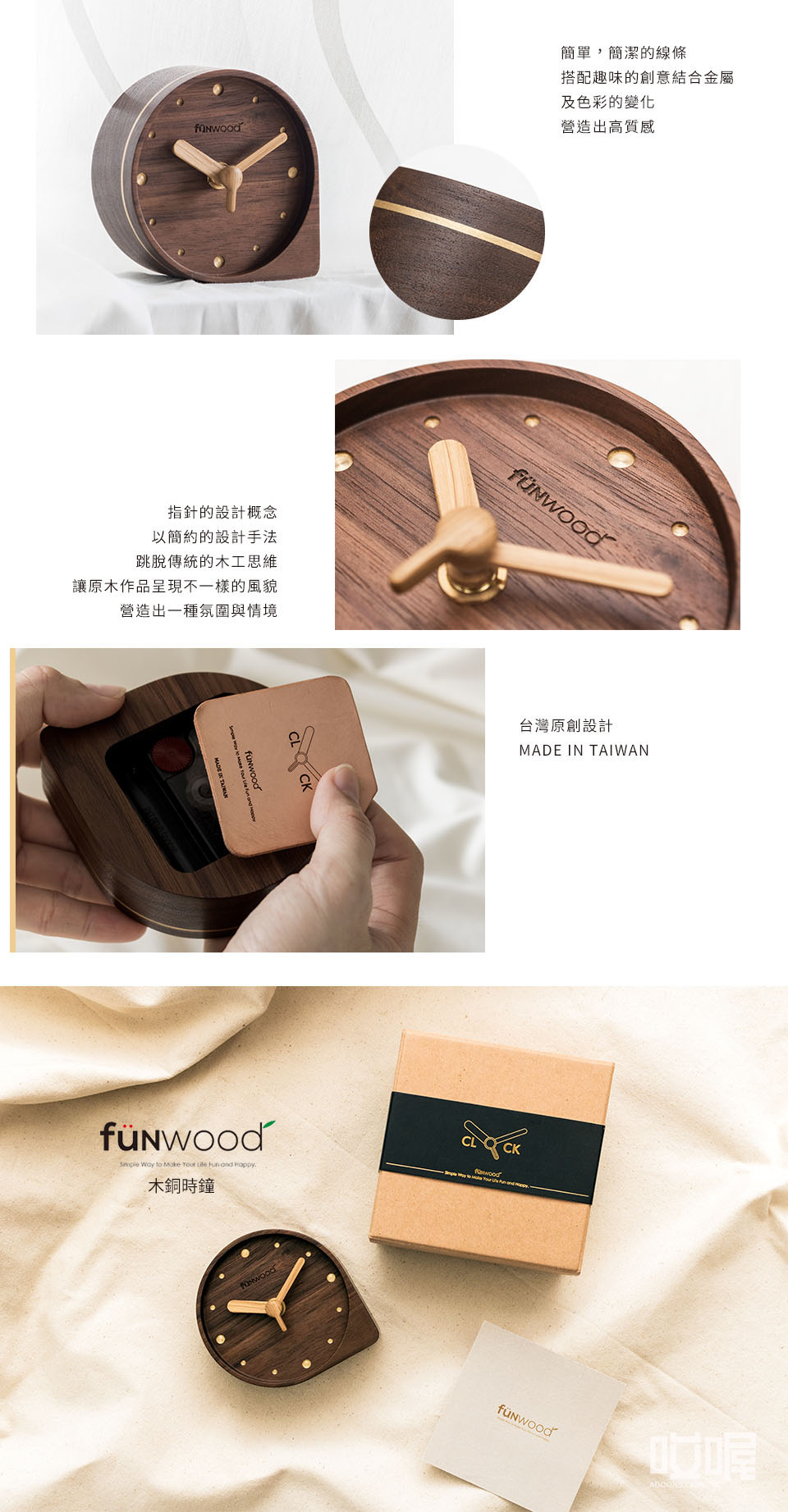 鐘系列是我們 fünwood 主推商品,產品取材於自然木材以及現代感十足的金屬材料等。利用不同材質的結合與色彩變化,賦予產品高質感以及多元性。