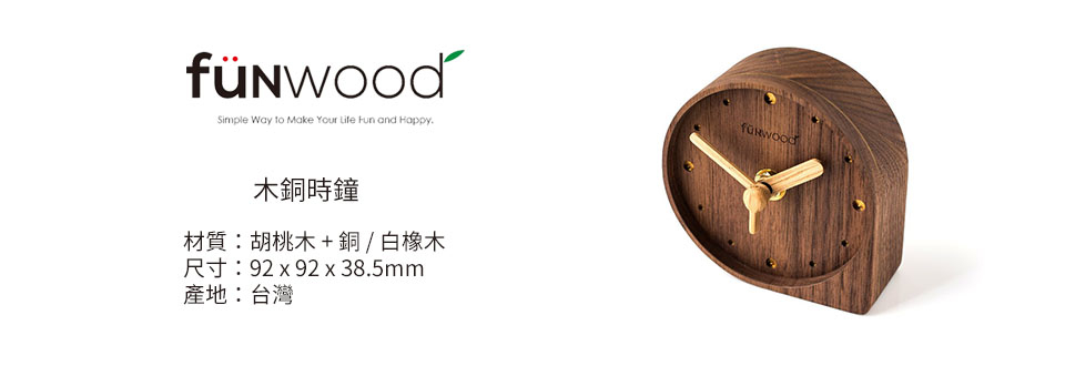 fünwood_方木 木銅桌鐘
