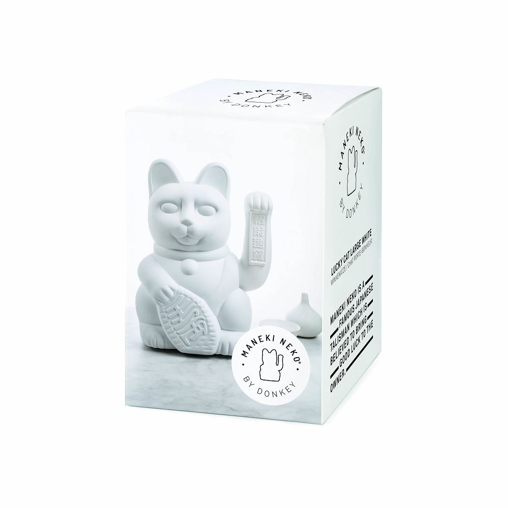 招財貓「 Maneki-Neko 」( 英文:lucky cat ),是來自日本的傳統幸運符,據說可以給他的主人來帶來幸福和財運。德國 DONKEY 創意工作室將日本招財貓擺飾重新設計出簡約時尚的版本,並以特殊的輕量優質塑料取代傳統陶瓷材質,呈現高雅的啞光霧面質感,適合喜歡現代都會風格裝潢的時尚潮人,是幸運的收藏品,也是理想的祝賀禮品。現在除了經典款,Donkey 推出了巨大版本:高 30cm 的個頭(經典款為 15cm )氣勢驚人,這個「霸王級」的招財貓,一樣兢兢業業地為你招來滿滿的好運!