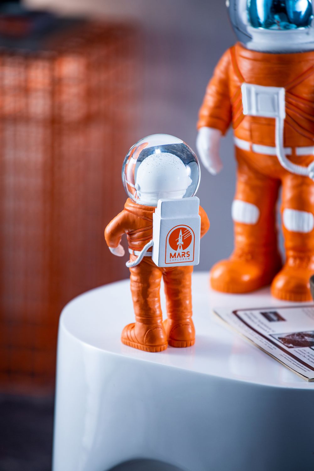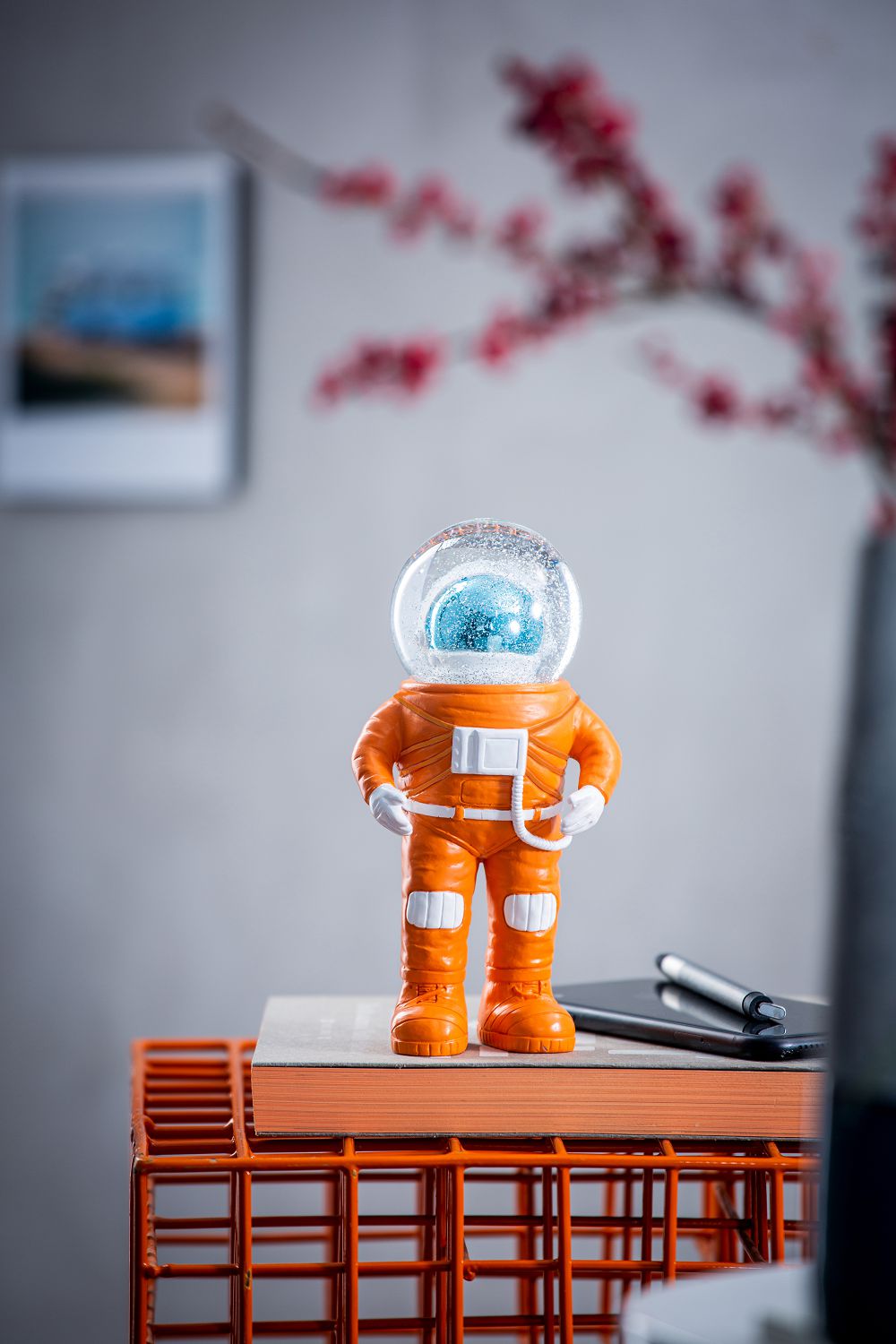橘色太空人造型水晶球擺飾 電鍍藍面罩-大