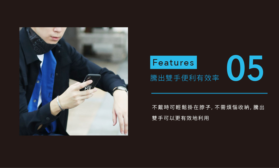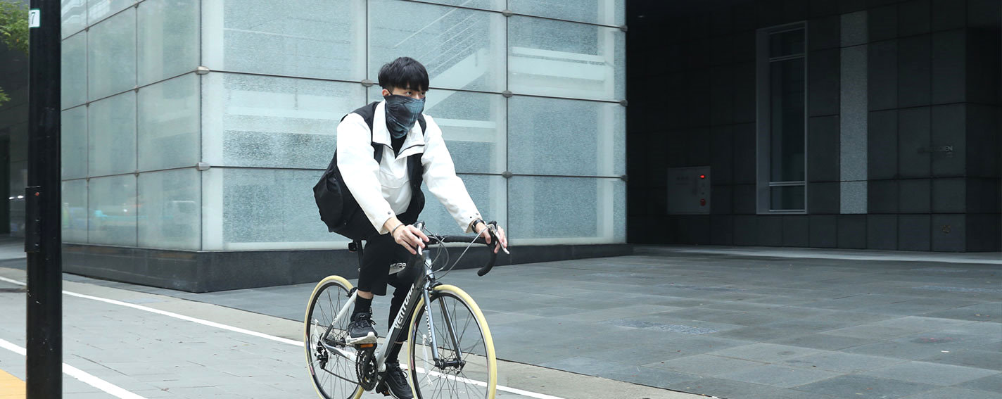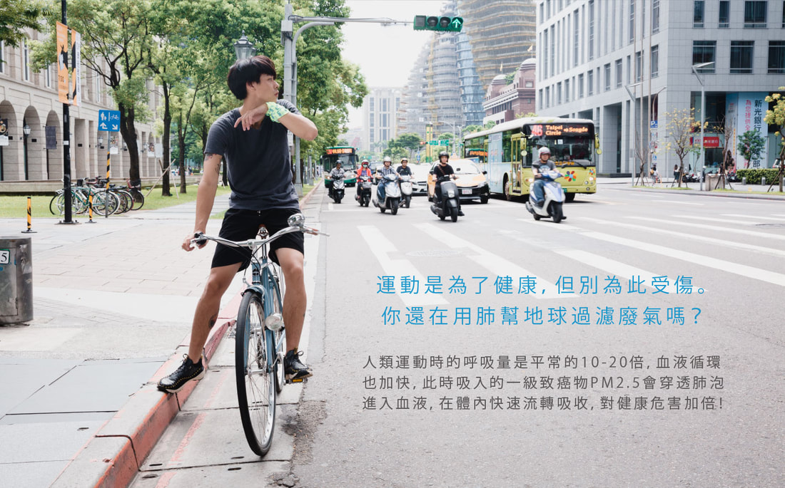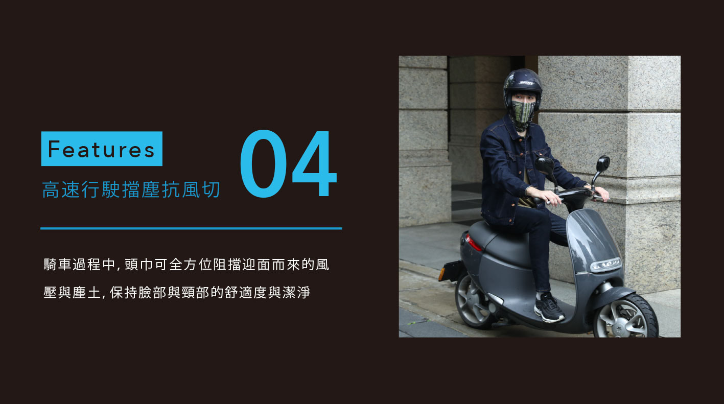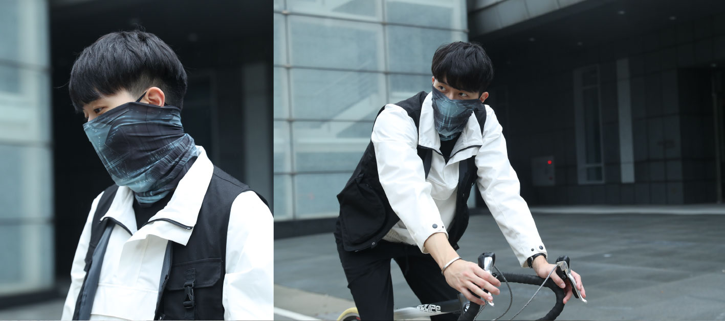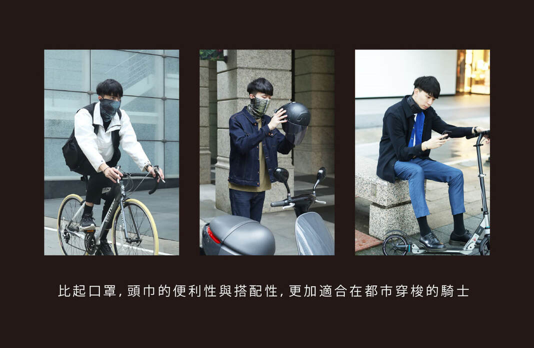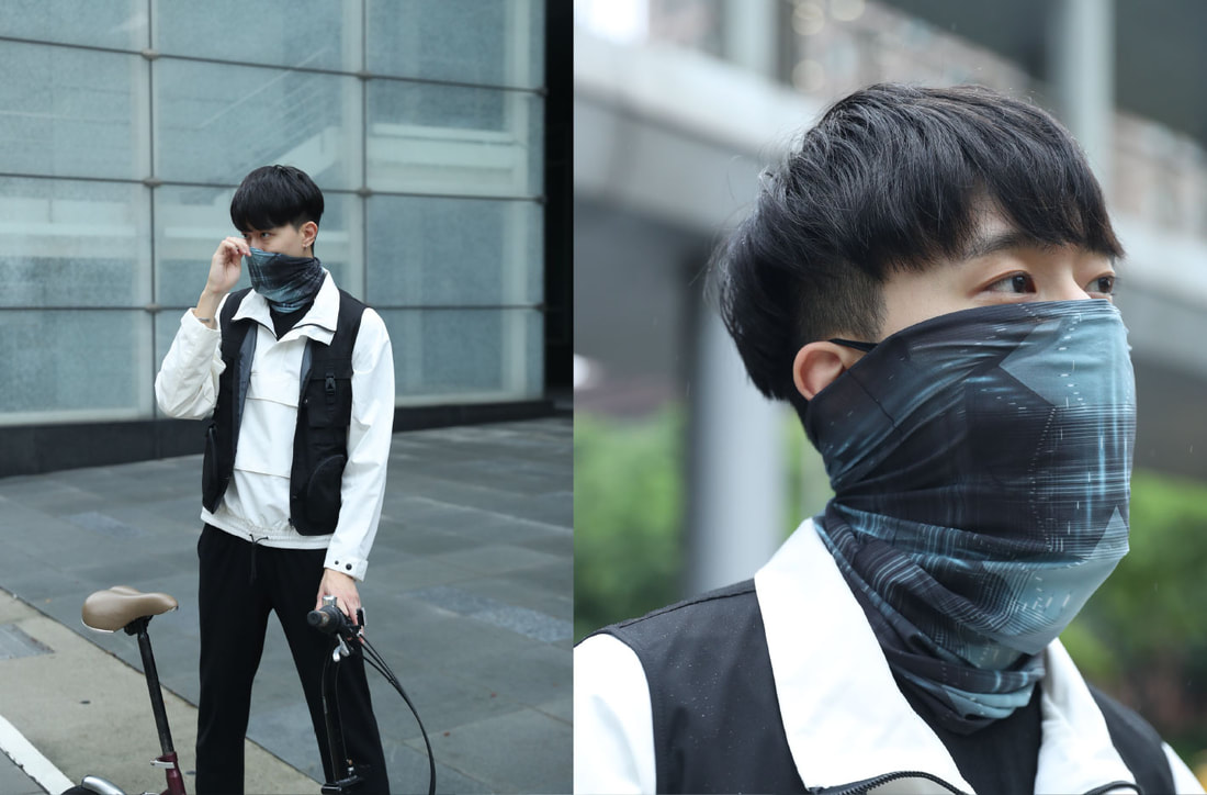 A:我們團隊中也有三鐵型的車手( 擊掌~ ),他的答案是:「這款產品只適合有氧區間使用,在攻上坡或是全力拚秒數時,進氧量是一切!任何會犧牲到進氣的都給我滾開!但在下坡及平地,尤其是市區、工業區,或剛好在卡車後面,請拉上魔術頭巾保護一下珍貴的肺。」