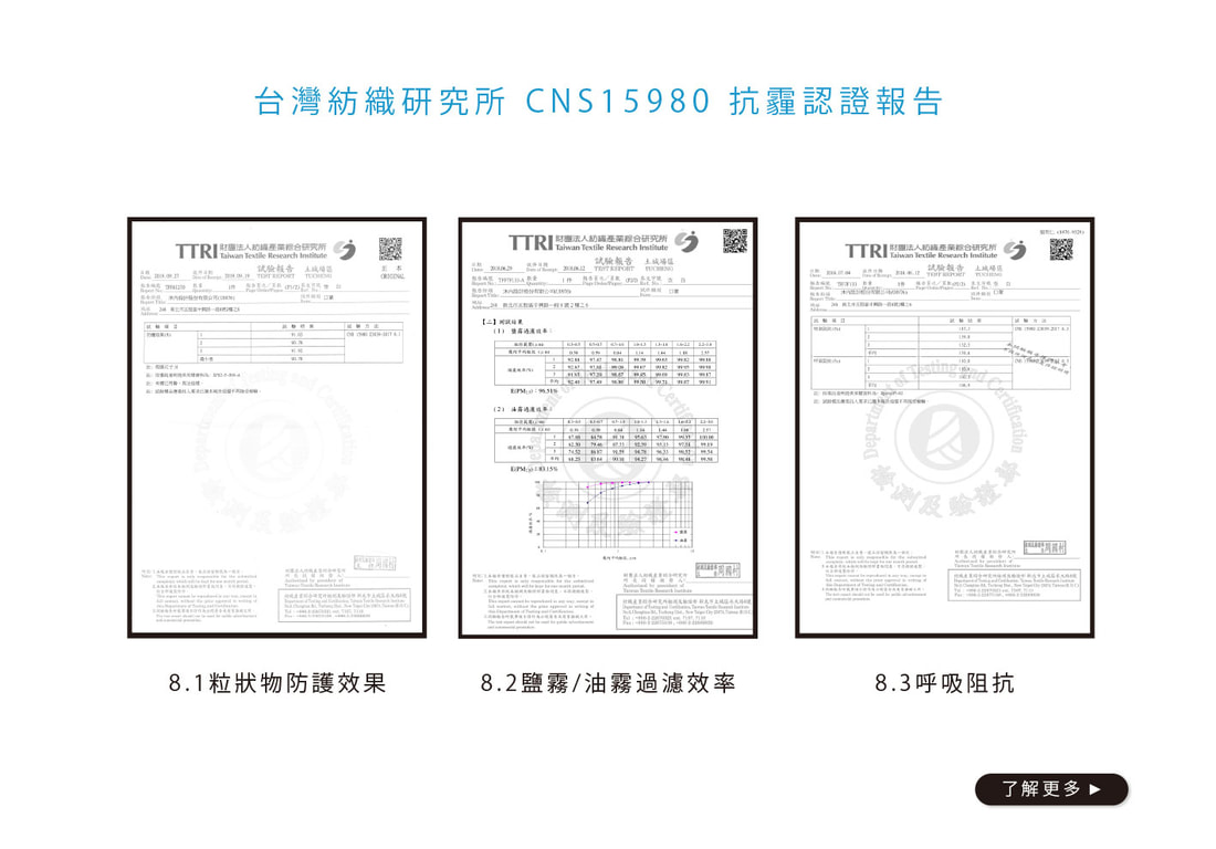 ◆ 通過台灣抗霾口罩標準 CNS15980 B級 ( G1為D級 )