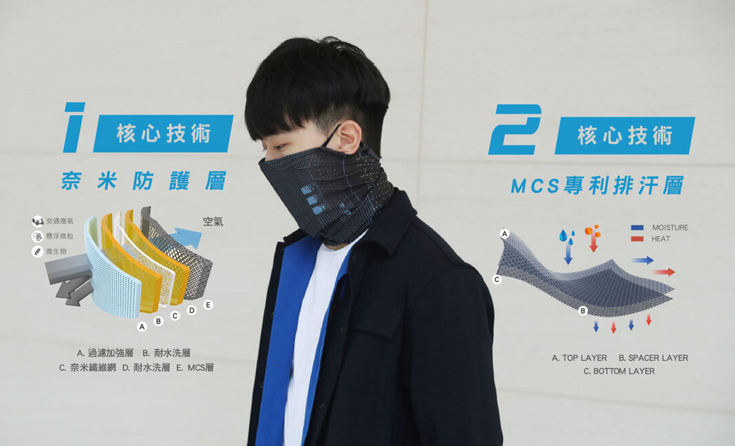 A:目前只有奈米防護層的內層濾材是與國外廠商合作開發,是由國外進口,其餘材料及加工全程均在台灣本地完成。