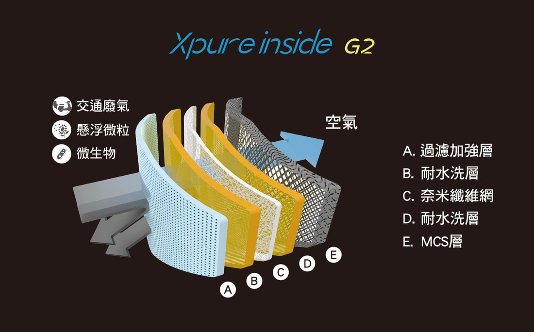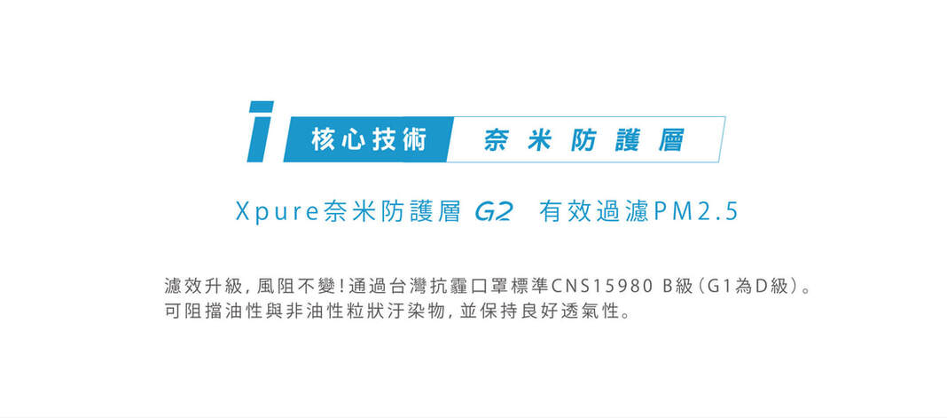 1. Xpure 奈米防護層為第二代,可通過 CNS15980 B 級( G1 為 D 級)。