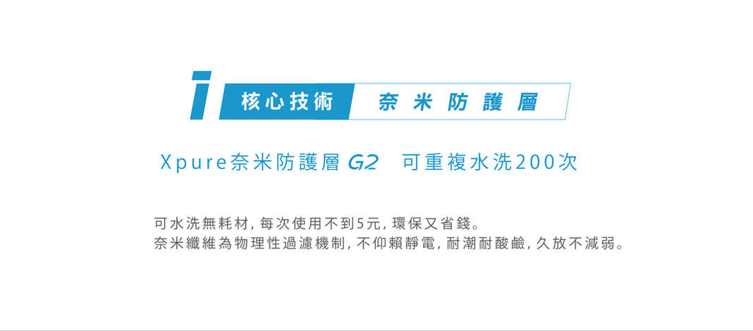 ◆ 奈米纖維為物理性過濾機制,不仰賴靜電,耐潮耐酸鹼,久放不減弱
