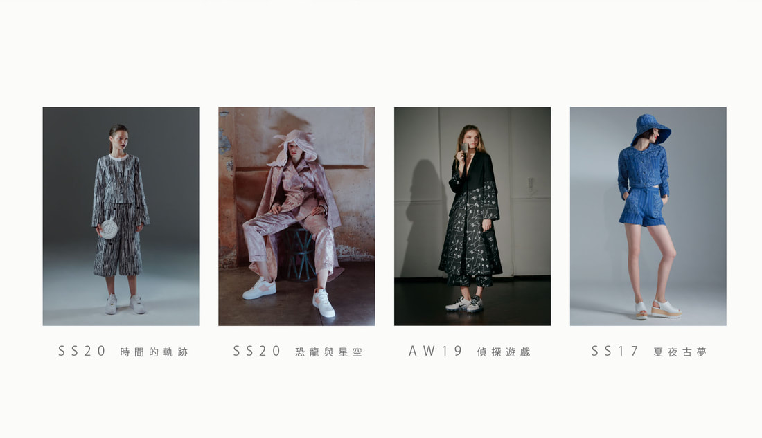 發想靈感源自APUJAN 2019秋冬「偵探遊戲」系列,將對閱讀的熱情轉化至織品上,藉著圖騰拆開的信、黑貓、時鐘、鑰匙、西洋棋等緹花圖騰,表達對推理小說的喜愛。
