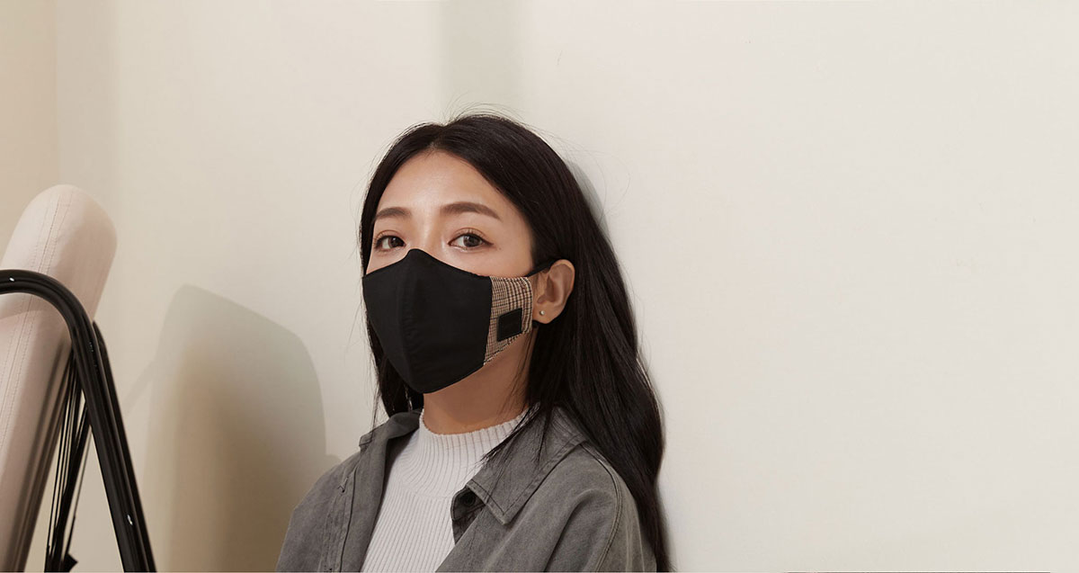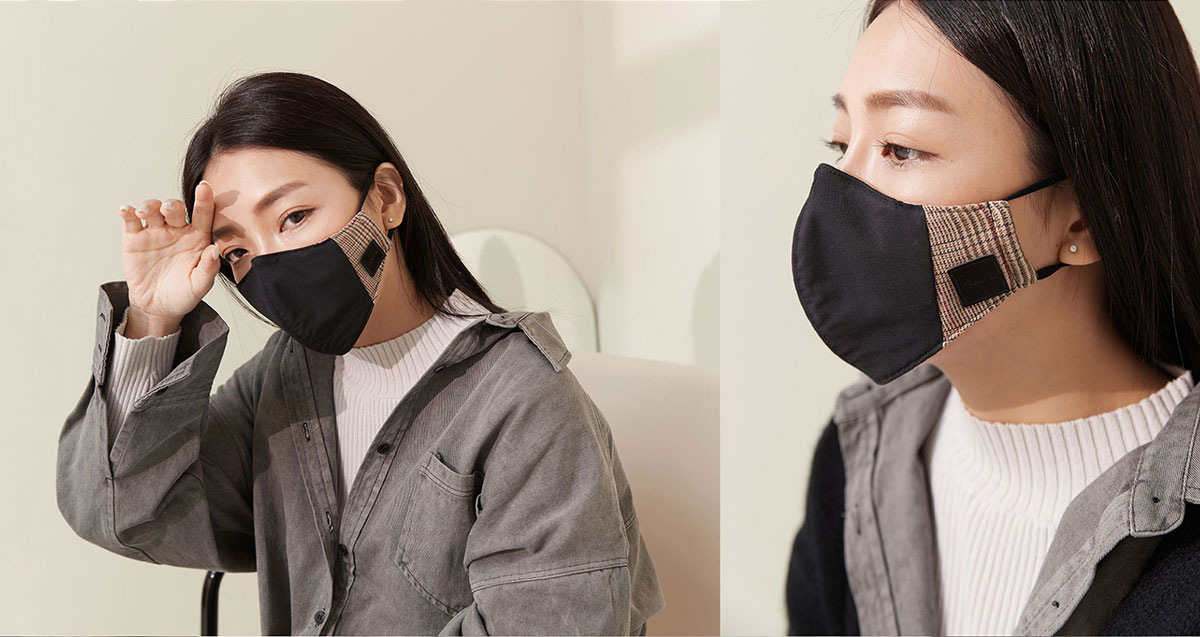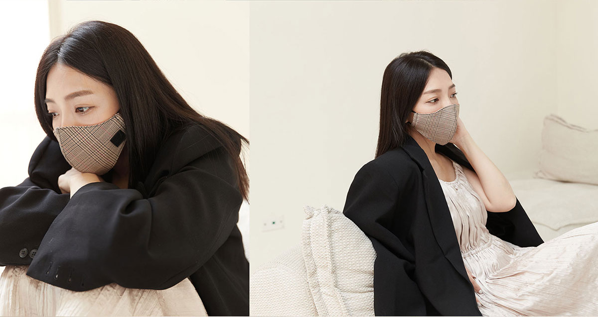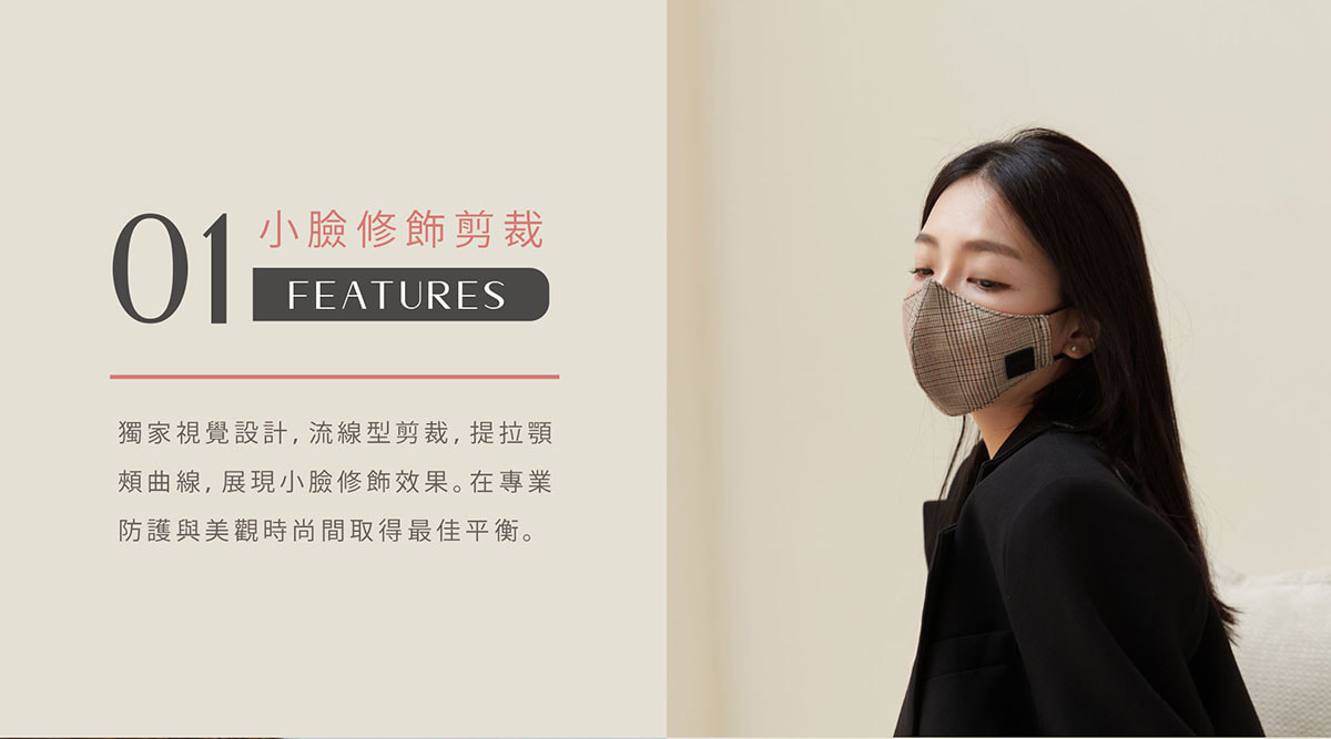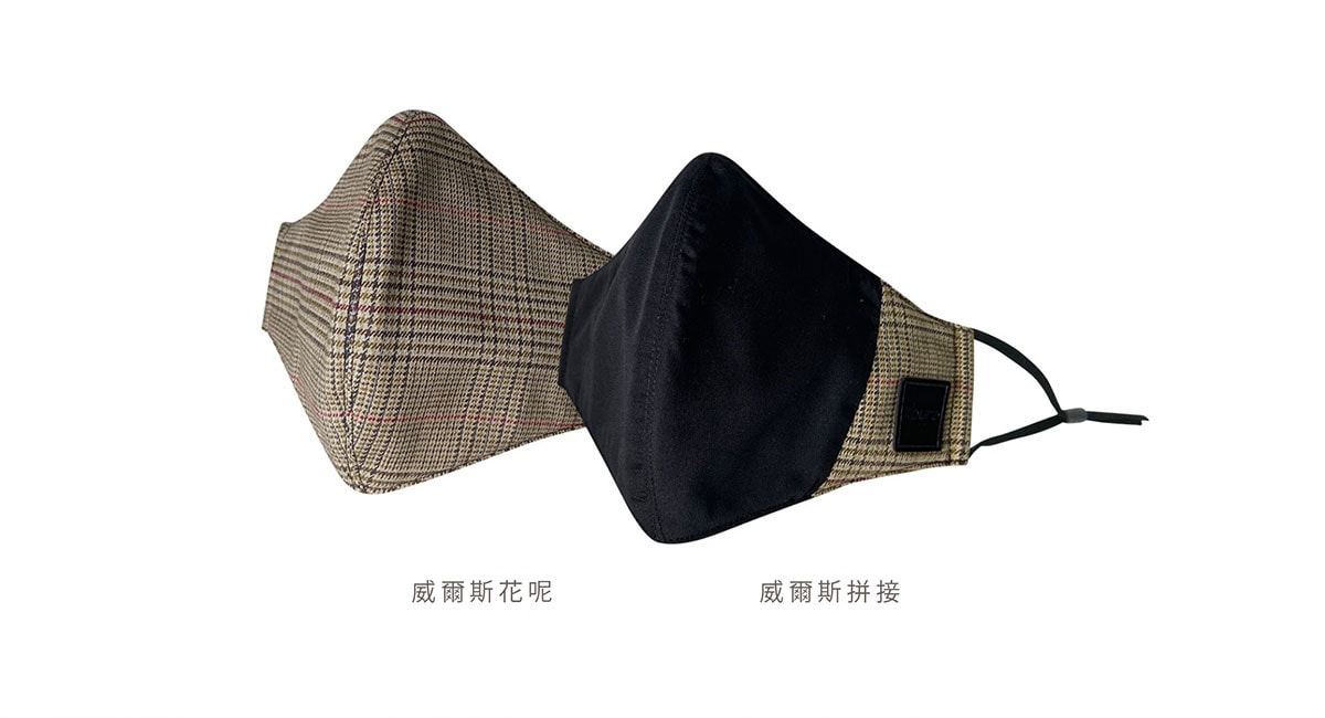 A:威爾斯花呢的表面布料採用 100% 純棉平織透氣表布,除了觸感極佳以外,呼吸體驗也提升許多。但要注意純棉材質清洗後晾乾時,需要拉整表面(跟洗純棉襯衫一樣),這樣口罩晾乾後才能保持平整。或亦可使用熨斗低溫熨燙(建議 100 度C以下),讓表布迅速恢復平整。