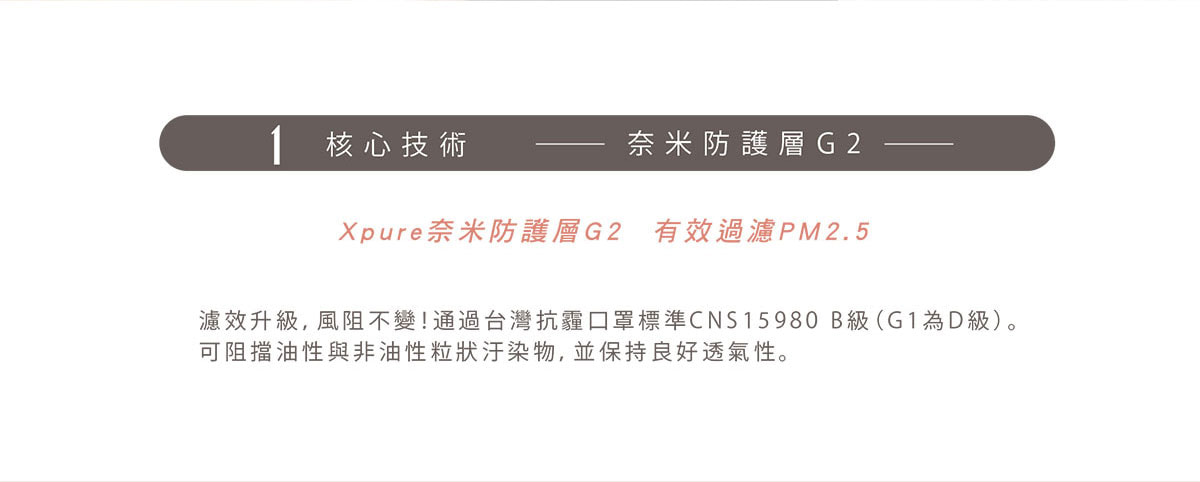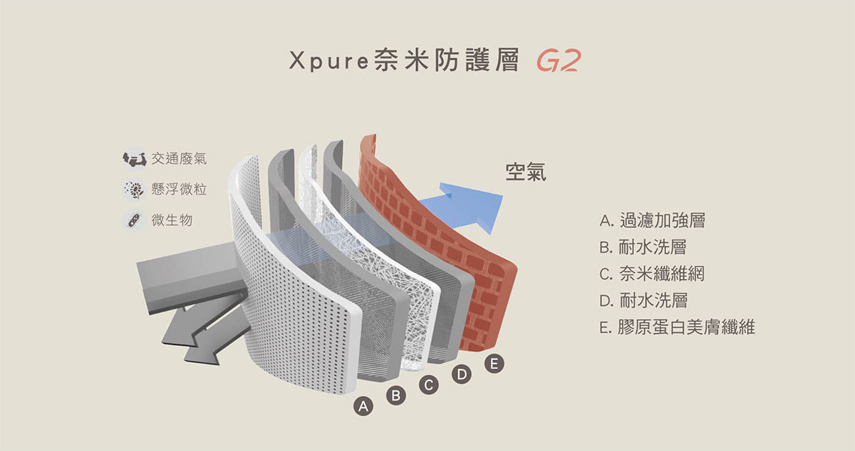 1. Beauty 採用 Xpure 奈米防護層 -G2 濾材