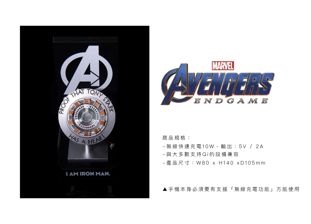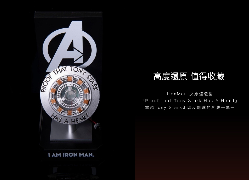 ◆ 鋼鐵人反應爐經典帥氣造型,帶有夜燈和無線充電功能