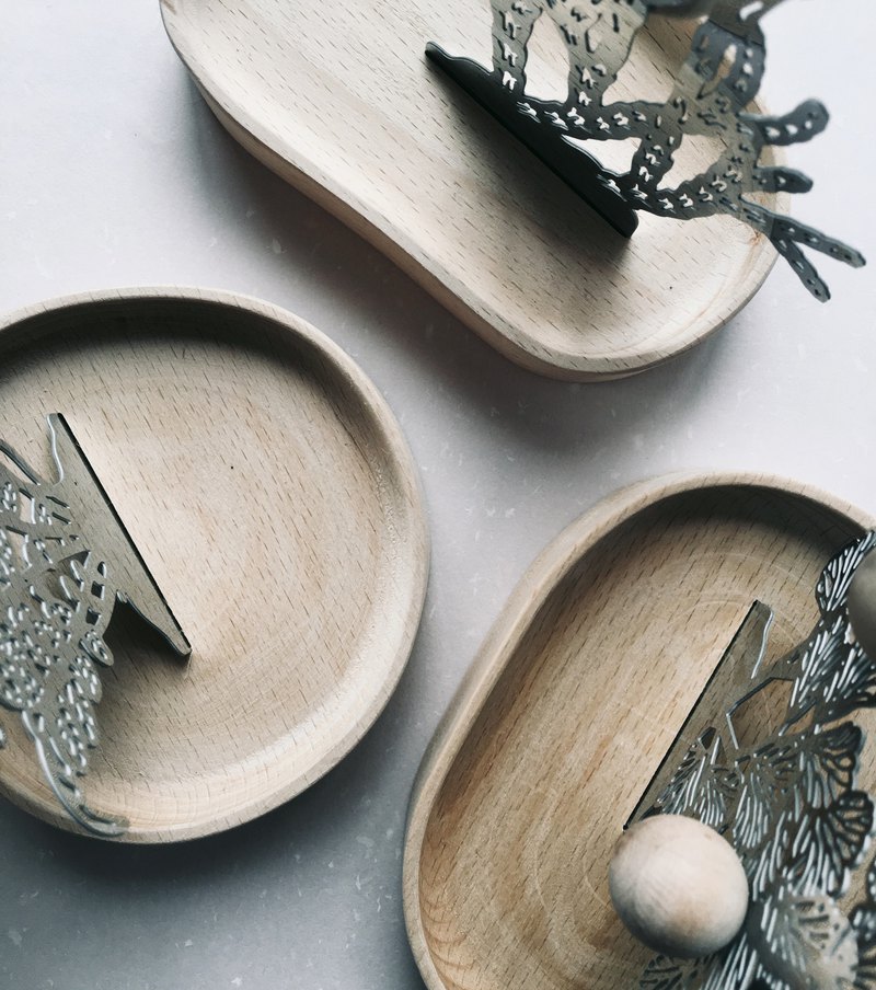 金屬板可掛飾品或是其他小物,木球磁鐵可吸附名片、便條紙等,木質底座可放置迴紋針或其他小巧用品。