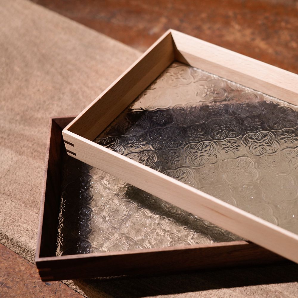 光印樣 海棠壓花玻璃-托盤 (兩款選)