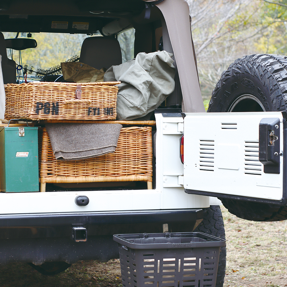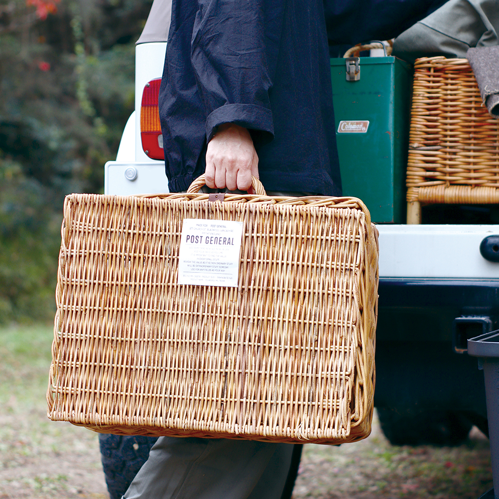 體驗戶外生活氛圍,塑膠、尼龍固然方便亦保養,仍須自然系的材質中和都會感,落地式藤編收納籃上印有 Post General 字樣,用法與造型皆展現了復古感,居家室內使用時可作為放置綠意植物或雜誌書報,而置於外出情境時則因立式設計可保持底面乾淨,清爽又具實用性。