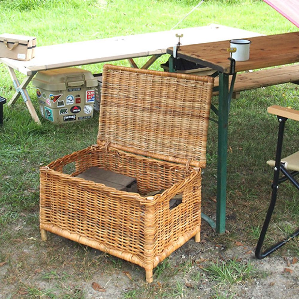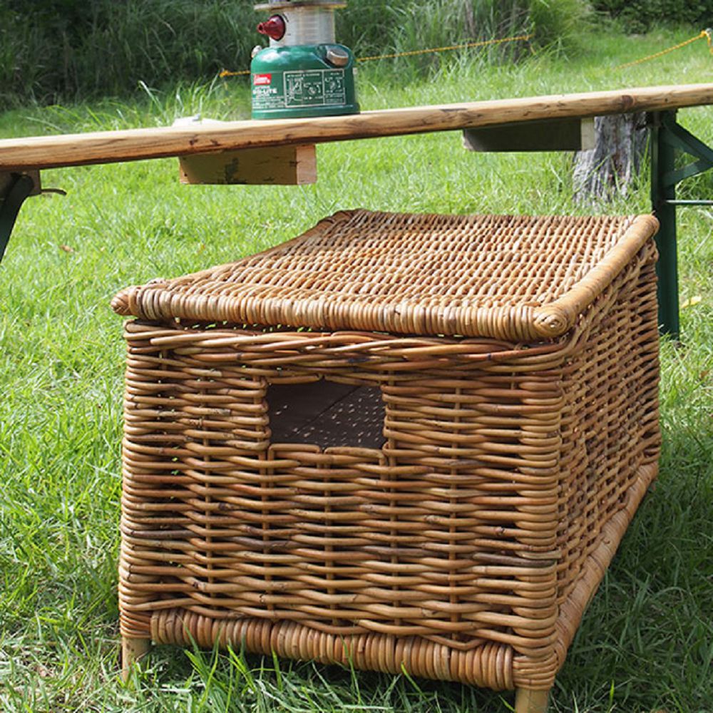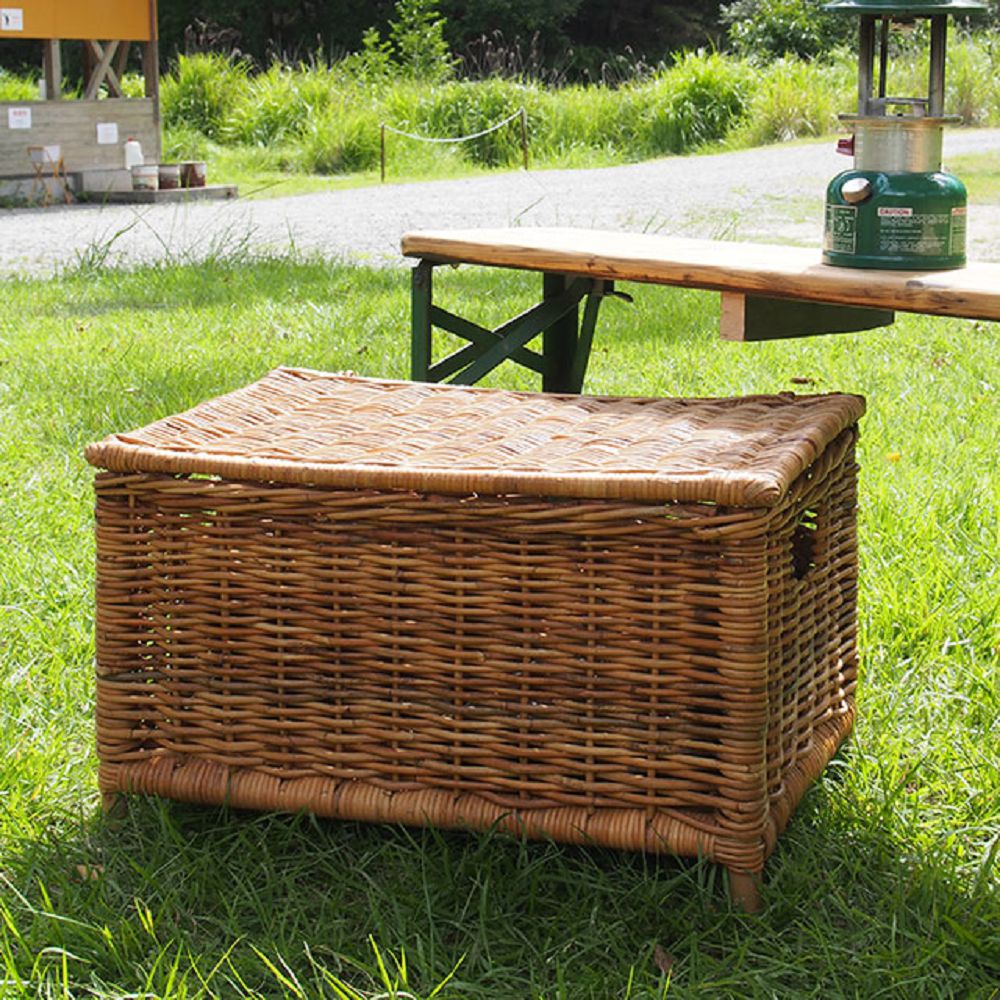 POST GENERAL的藤製編織收納箱,天然材質透氣性佳,箱蓋設計增添收納防塵力,使用壽命長。吸引目光的時尚收納,可以放置在倉庫、車中、庭園等處,作為收納露營用品或是攜帶野餐用具的整理箱使用,戶外使用時,蓋上箱蓋可作為小矮桌使用。四邊箱脚加高設計,放置在戶外、草皮上不怕底層污損。設計創造生活新價值