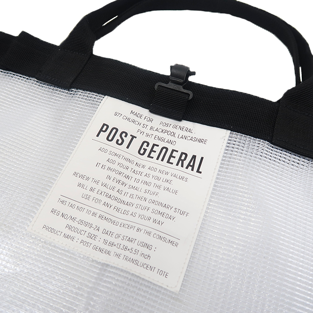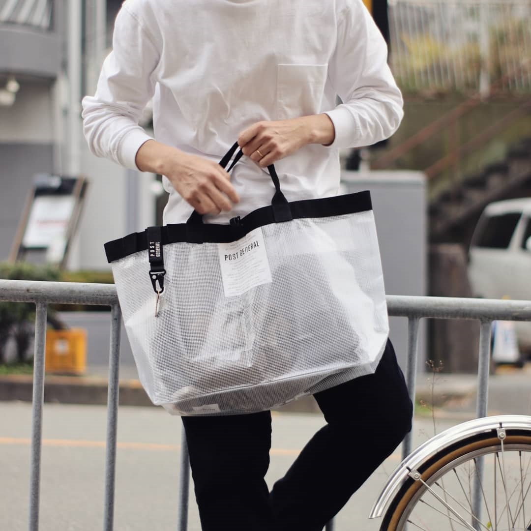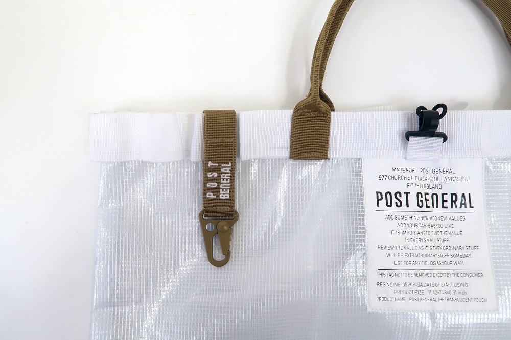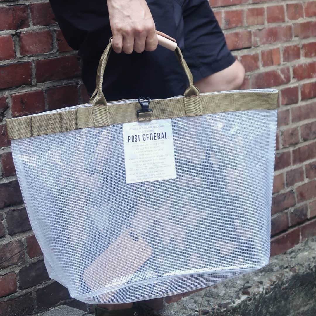可折疊防潑水環保購物袋則更增添了尼龍收邊,卻有不同於挺版帆布包樣式設計,塑造獨特的文青肩背氣息,上街購物、逛博物館背取亦可兼具時尚風格;而 Post General 中型透明收納提袋更具都市生活的氛圍,仍可搜羅上班文件至旅行換洗衣物等從正式至休閒的使用情境,戶外生活常用的吊環設計可作為鑰匙扣或感應卡包的吊掛處,塑造出忙裡偷閒的愉悅心情。