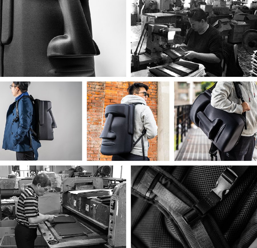 因為喜歡,所以就去做了。這是一顆台灣製的背包:設計、模具、生產,以及打版的老師傅等等,都100%在台灣製造。這並不算一顆太簡單的包:臉部表情如何以最真實的方式呈現、內部空間如何運用、要切成幾個空間、需要幾個袋子、這種體積的背包要如何背得舒服等等,在在都考驗著設計者的功力。