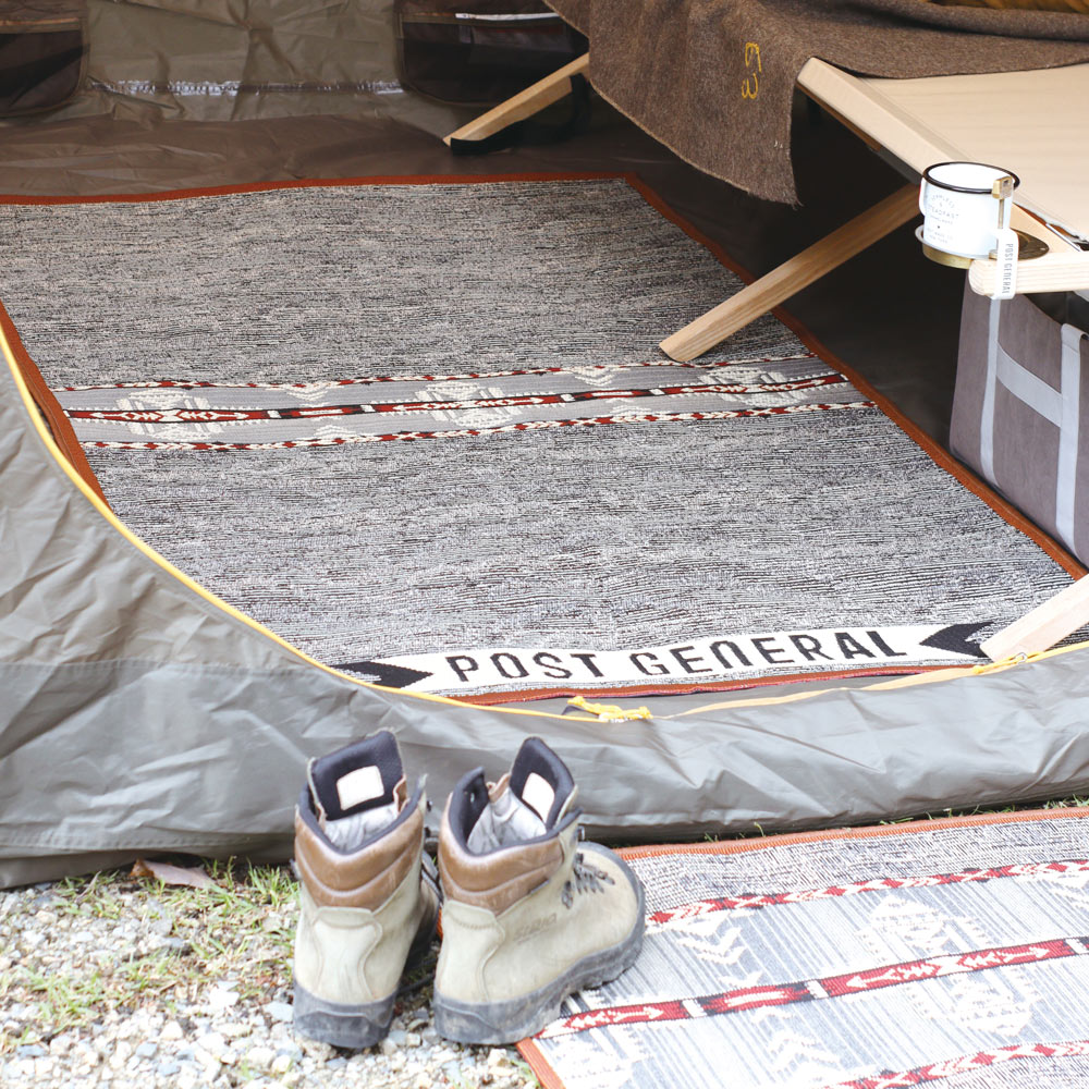 風格地毯地毯亦是塑造出空間風格的關鍵軟件織品,Post General 戶外抗 UV 可水洗地毯以部落、營地的圖騰打造出露營時的一貫感受,外出使用時可隔絕地面寒氣,抗 UV 的加工方式讓色彩不易褪色,有污漬也能直接放進洗衣機水洗,為戶外運用的方便設計也使居家室內情境更為適合,輕鬆轉換空間調性。