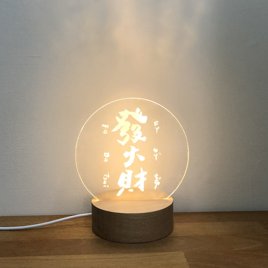 -壓克力:直徑 14cm材質:-實木底座、USB 插頭、光學級壓克力規格:-USB 接頭:可使用手機充電器(豆腐頭)、行動電源、電腦 USB 孔點亮小夜燈。