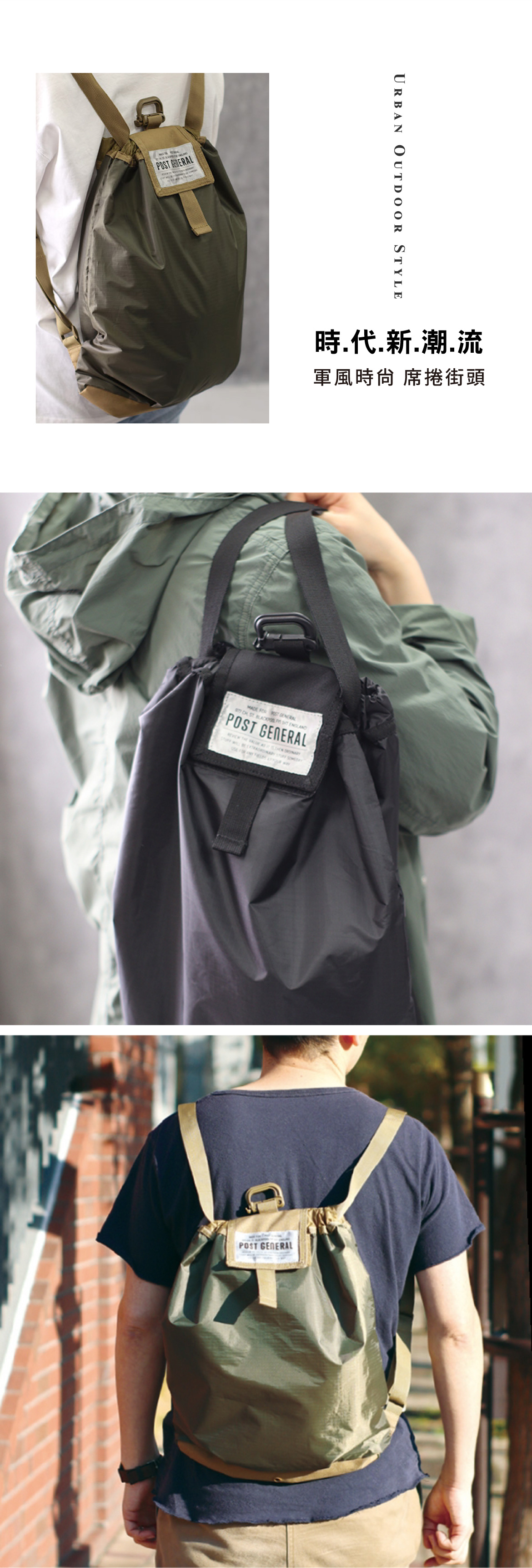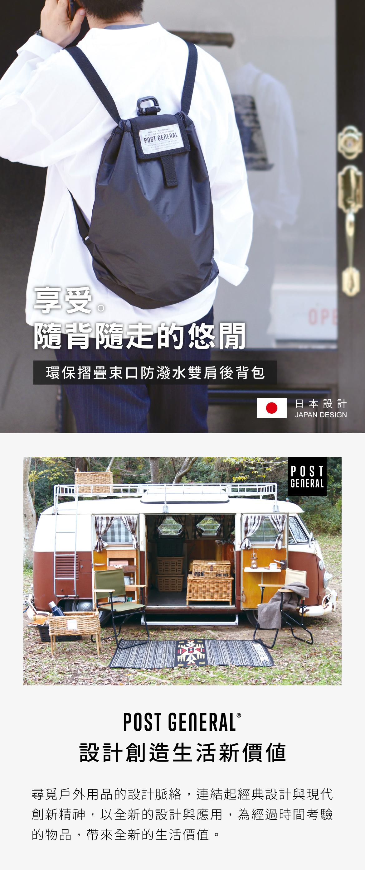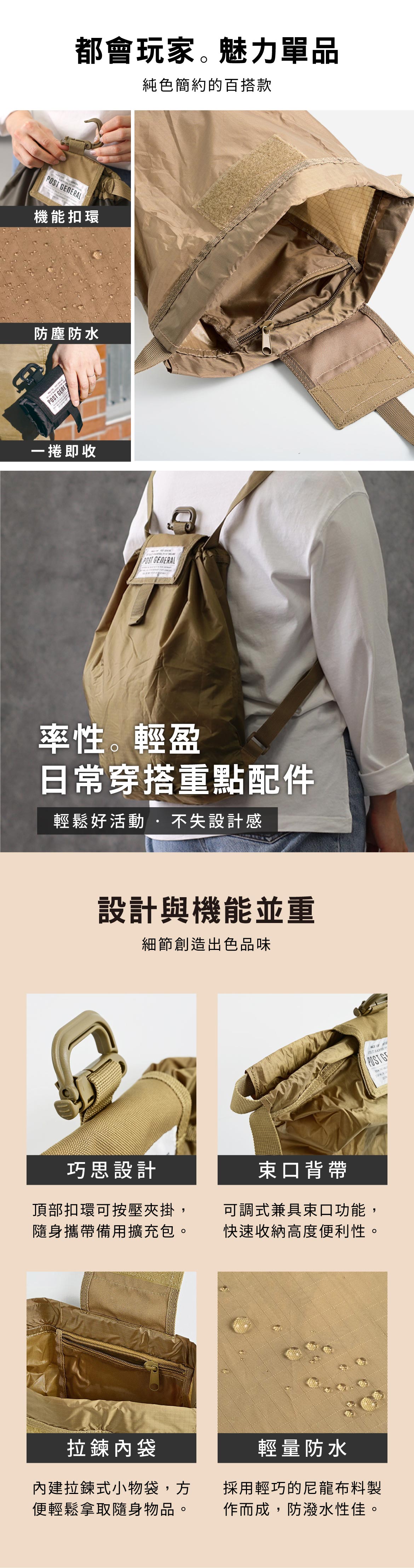 POST GENERAL 環保摺疊束口防潑水雙肩後背包/束口袋/環保袋,以輕量尼龍機織布料製成,防潑水性佳,適合做為運動背包、購物袋使用。設計創造生活新價值