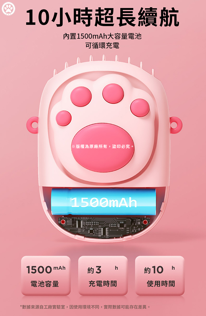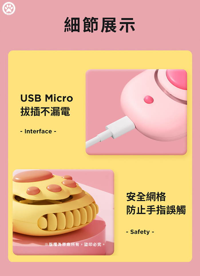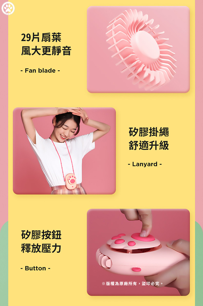 -內容物:貓爪抒壓掛脖風扇 x1、MicroUSB線 x1、矽膠掛繩 x1