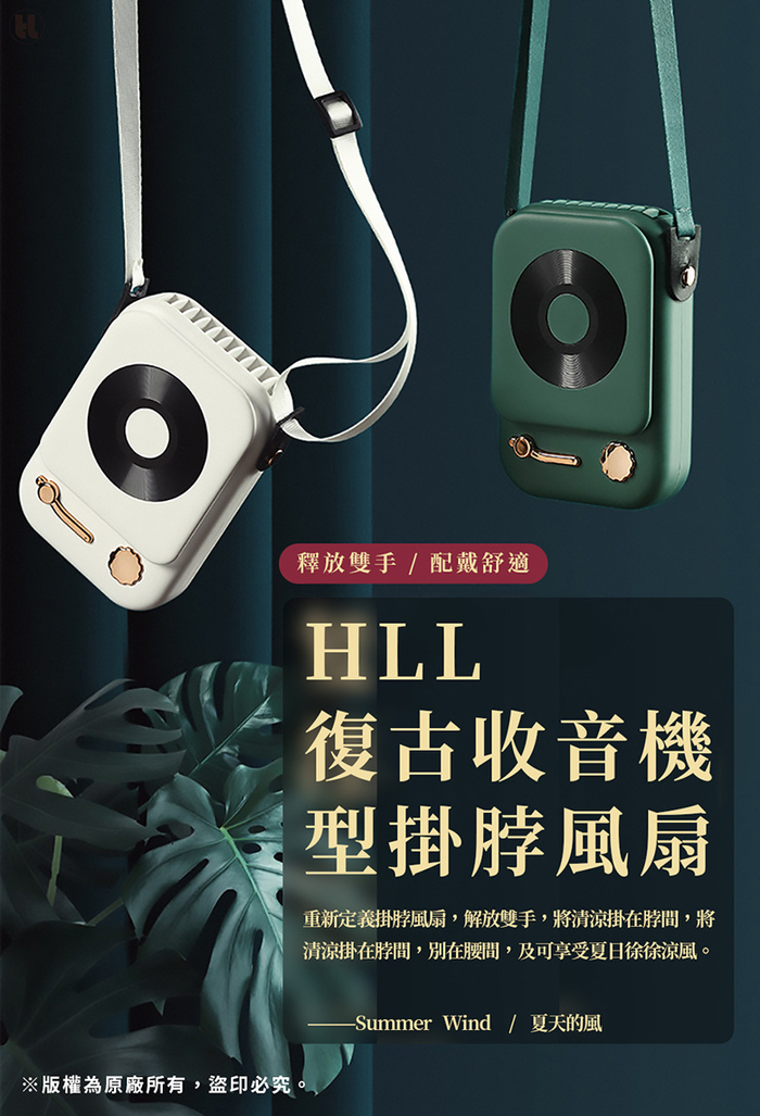 HLL 復古收音機型掛脖風扇 (三色選)