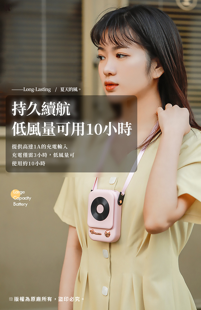 ◆ 依照不同風量,最長可續航達 10 小時(微風模式)。
