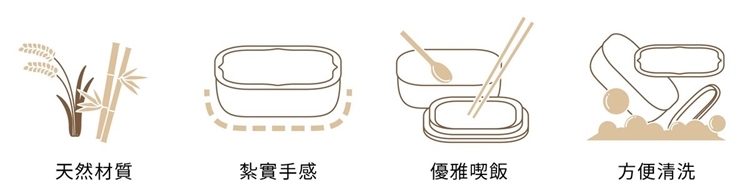 美味 | 蓋內盤緣設計,在外用餐就像在家喫飯質感 | 圓潤盒身、紮實手感,質感更加分安心 | 100% 天然材質,無毒無塑永續 | 升級再製,賦予廢棄稻殼新生命方便 | 零件簡約輕鬆拆卸、方便清洗隨行 | 搭配矽膠圈及便當袋,出門外帶不易溢漏設計 | 室內室外兩棲合用,出外隨行、在內隨心獨特 | 稻殼材質自然混色,獨一無二紋理