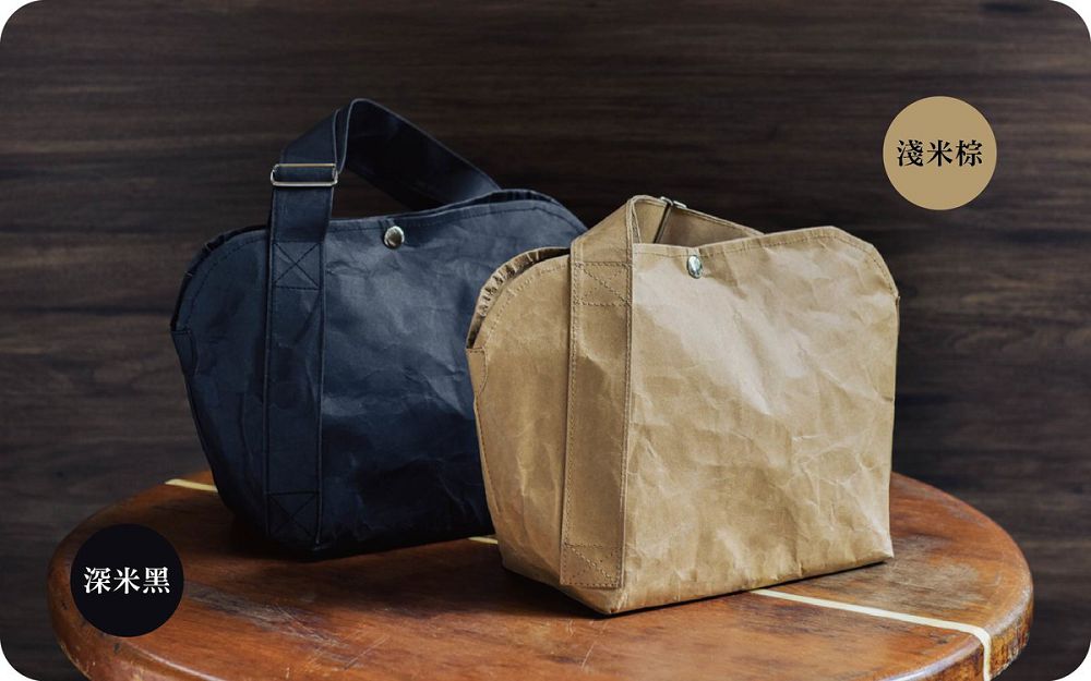 稻殼便當盒以外,厝內也推出以水洗牛皮紙材質製作的便當隨時袋,彈性的空間可完美包覆 1 或 2 個 Rice-Cycle 稻殼便當盒,外帶便當更安心。