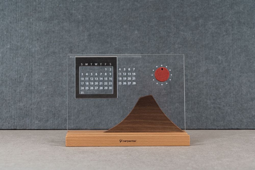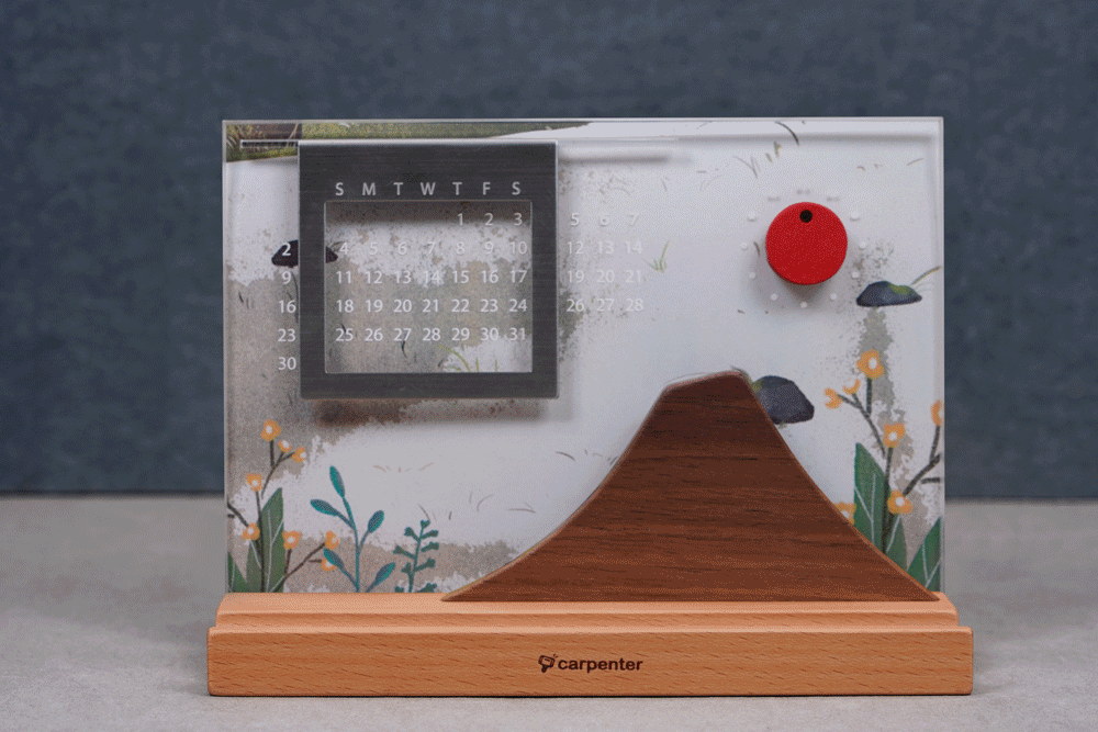 完美的一日,有,窗外的風和日麗,與,桌上的風和日曆。煦煦日光繞著圓轉動,象徵 12 個月份;金屬銘版可隨心移動,象徵每周的日期。山峰的景色讓人嚮往出遊時的風和日麗,底座可收納桌上文具以及名片、Memo。讓風和日曆成為你桌上的一片風景,陪伴你每一日。![]()
