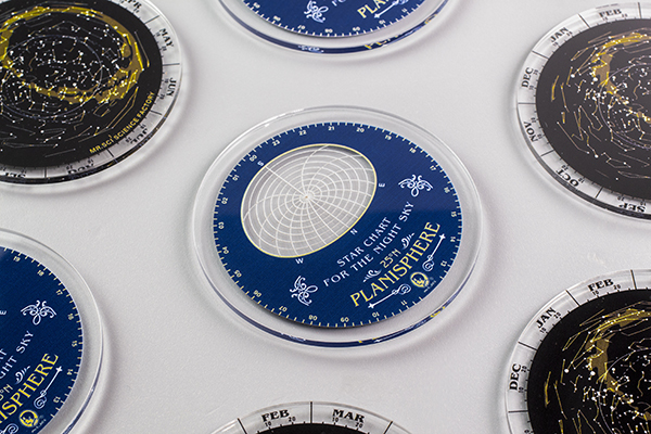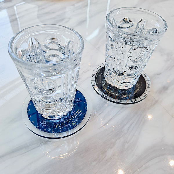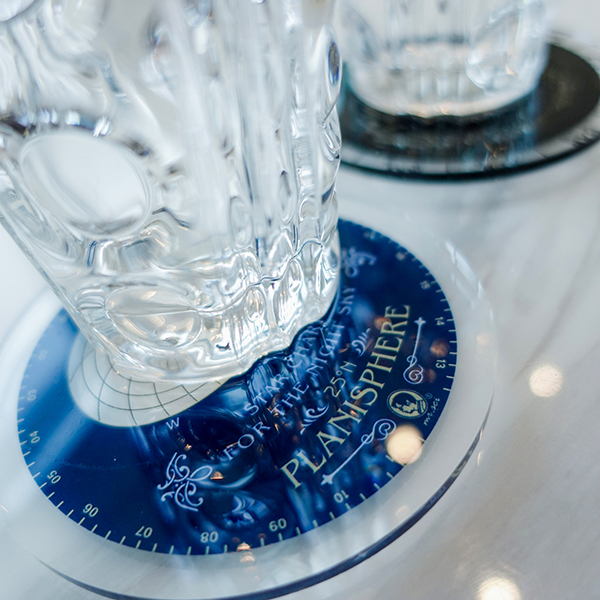 杯墊兩入一組,分別為星座圖和觀景窗圖面組成,
