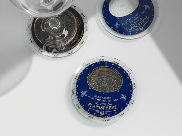 我們希望設計一個產品能時時的提醒我們繽紛而遼闊的宇宙其實就在我們的上方,於是我們嘗試結合杯墊與星座盤,讓你可以在日常生活使用杯墊時,