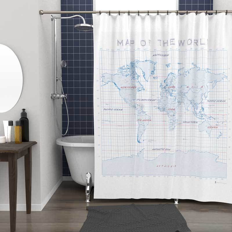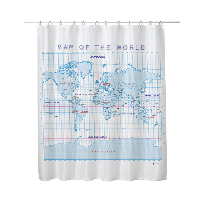 全球地圖浴簾,讓您洗澡時可以盡情探索、環遊世界。