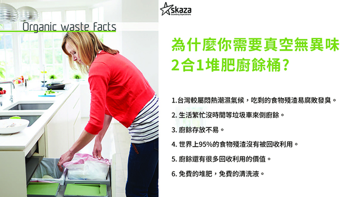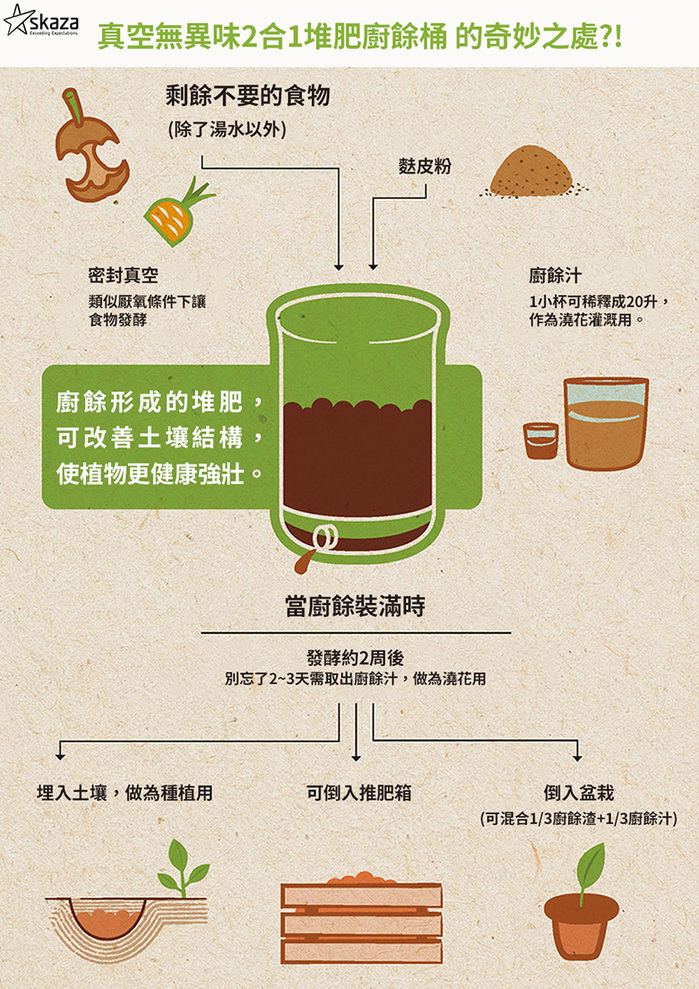 skaza 真空無異味 2 合 1 堆肥廚餘桶 (三色選)