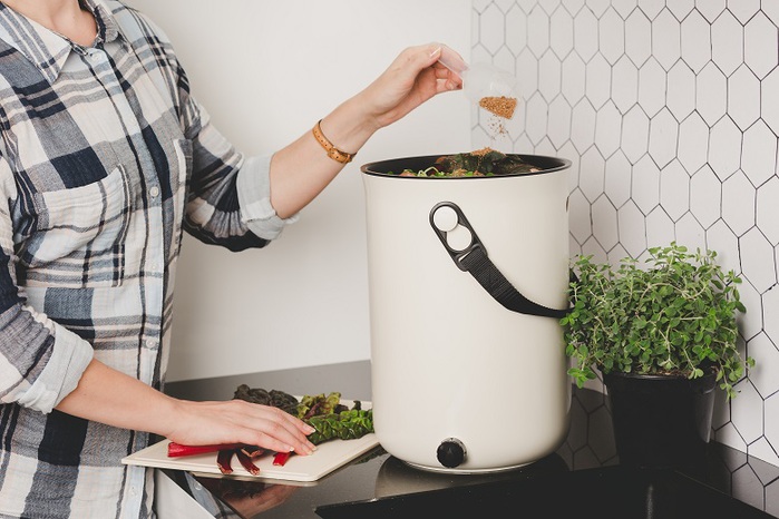 - 倒入廚餘粉覆蓋廚餘。如果天氣較為炎熱,請倒入多點。